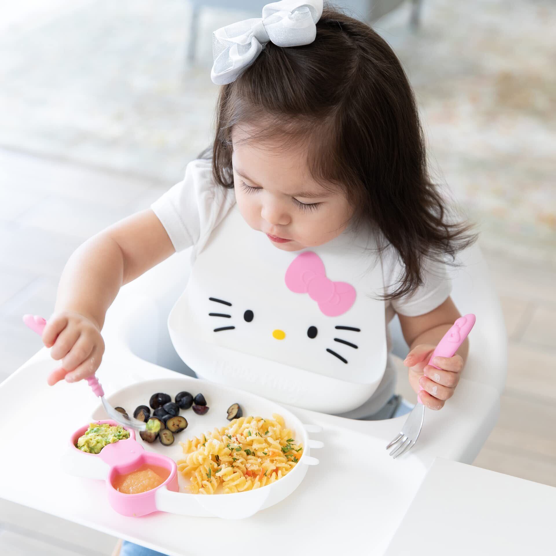 バンキンス×ハローキティお食事シリーズ:体にフィットするやわらかいシリコン製のお食事ビブ