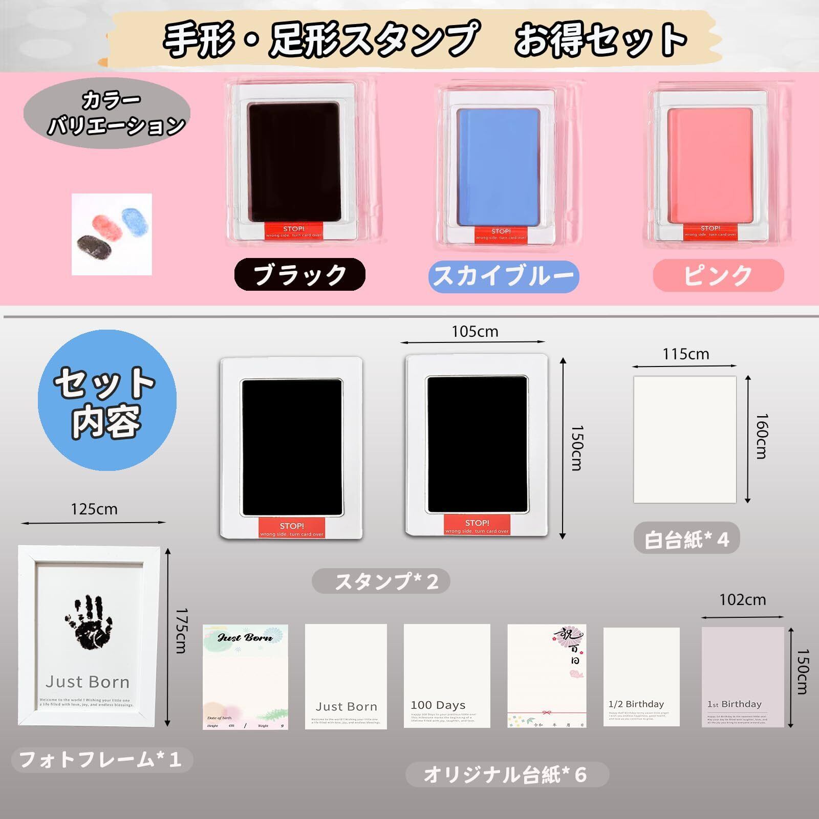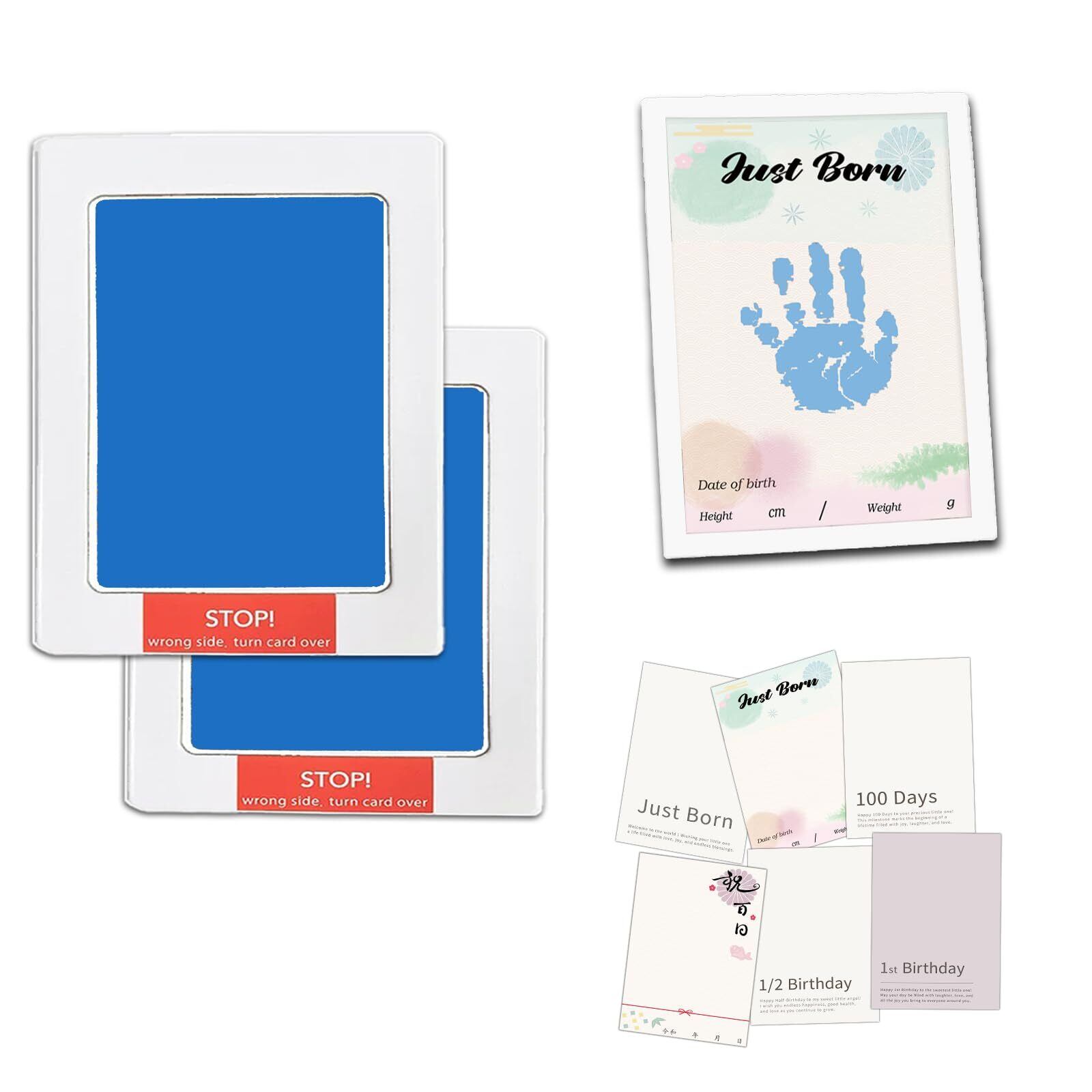 lollipopk 【汚れないインク】 手形スタンプ 赤ちゃん 手形足形セット 出産祝い プレゼント 命名書 100日祝い ベビー用品 ベビーフレーム付き (ライトブルー)