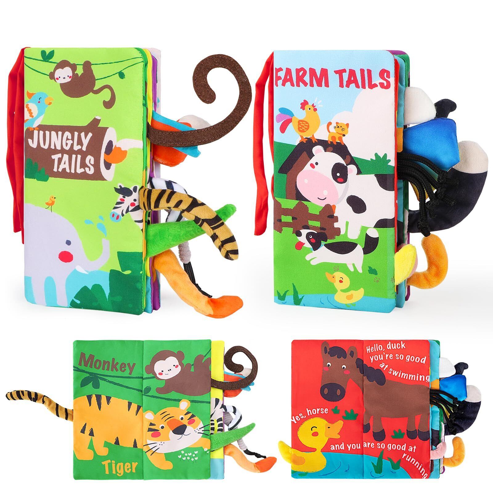 beiens 布絵本 布のおもちゃ 赤ちゃん 洗える【ピーピーの音が出てくる】 【動物シリーズ・3Dアクティビティブック】 おでかけ布えほん 幼児 0歳から 指遊び 歯がため ベビーカー用おもちゃ 知育玩具 幼稚園 出産祝い 子供 2冊セット