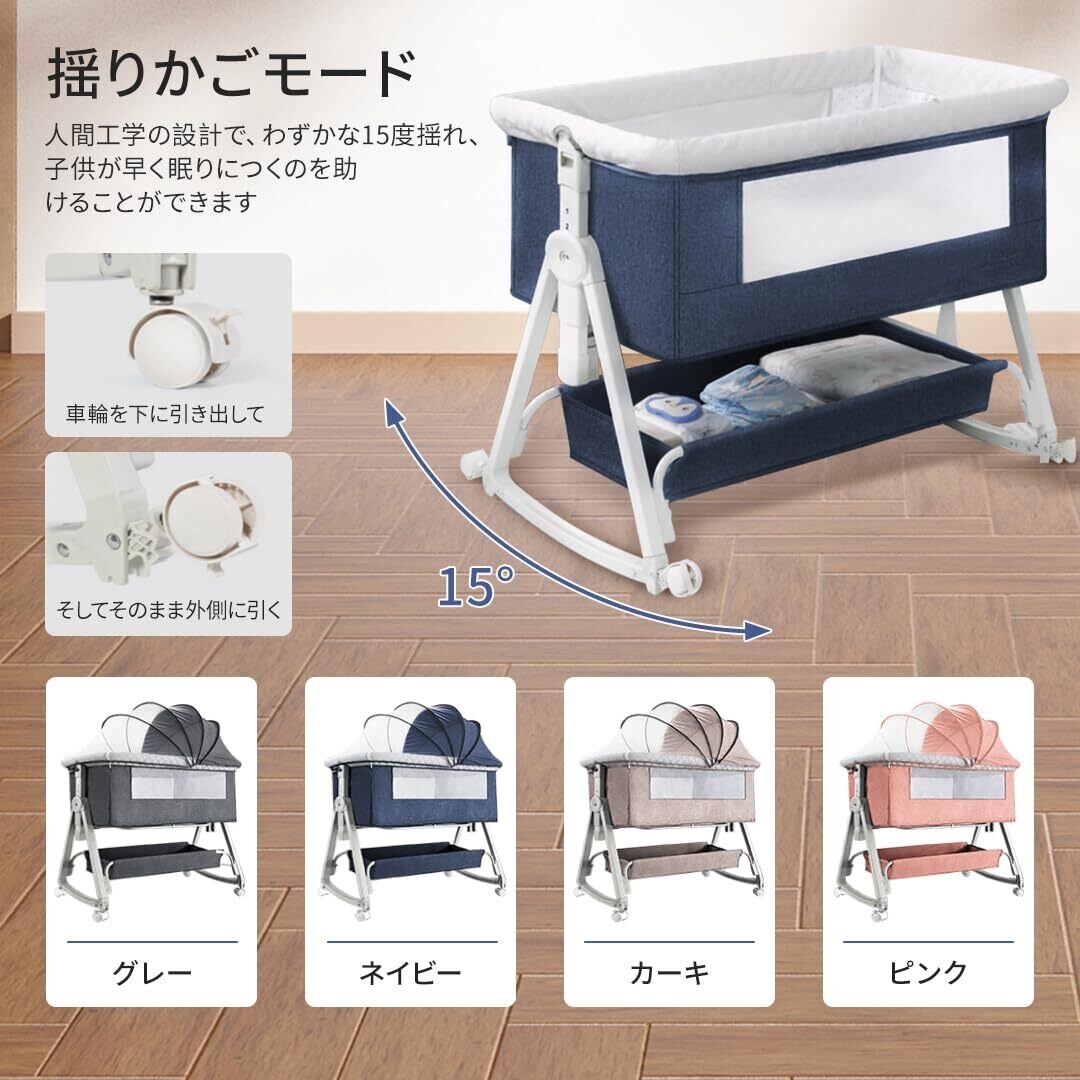 Kino Linpo ベビーベッド 添い寝 新生児ベッド 乳児用ベッド 高さ6段調節可能 蚊帳 通気性 揺りかご 収納バスケット キャスタ付き 持ち運び便利 組み立て簡単 幼児 新生児用 出産祝い プレゼント