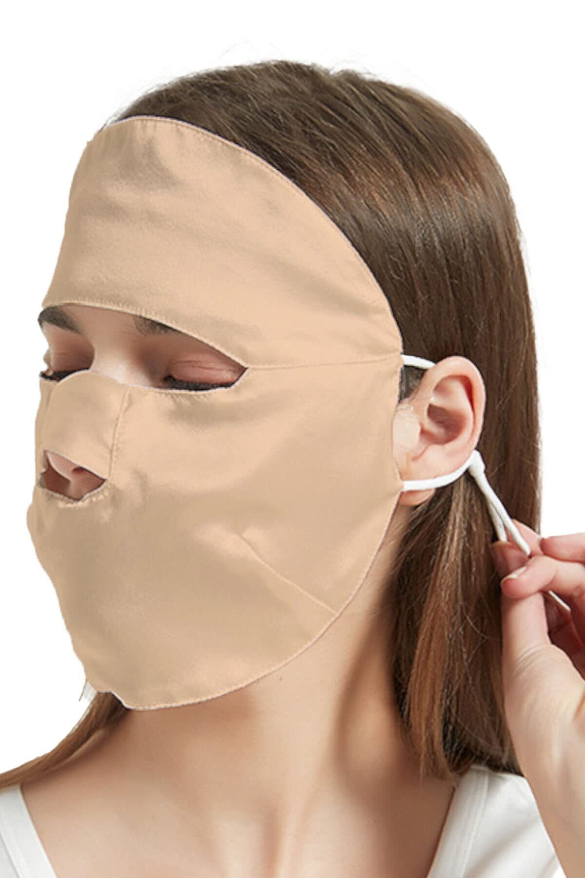 シルクマスク 寝る時 フェイスマスク 就寝用 美容 保湿 乾燥肌 敏感肌 100%天然 紫外線対策 肌荒れ パック (ベージュ)