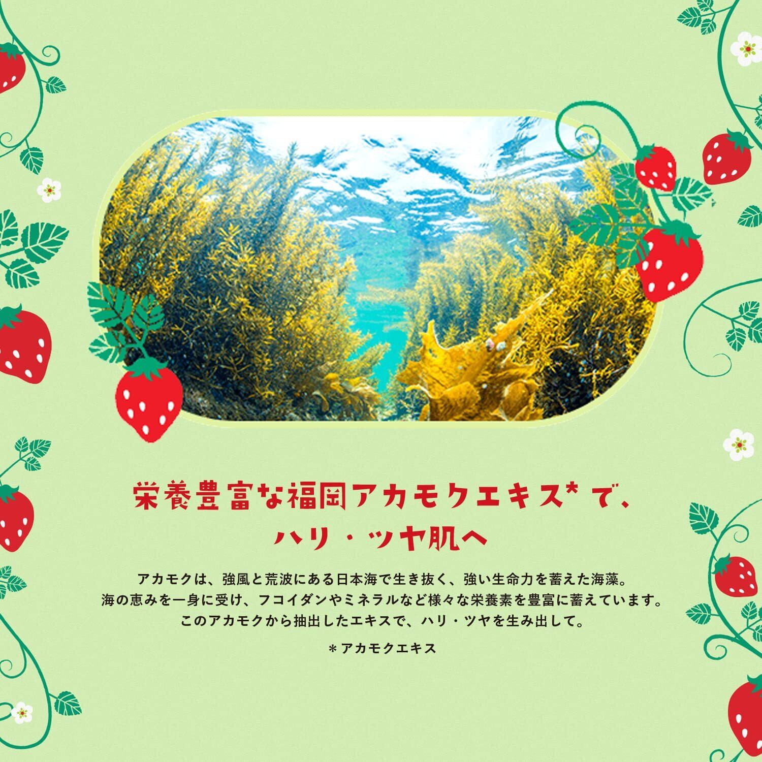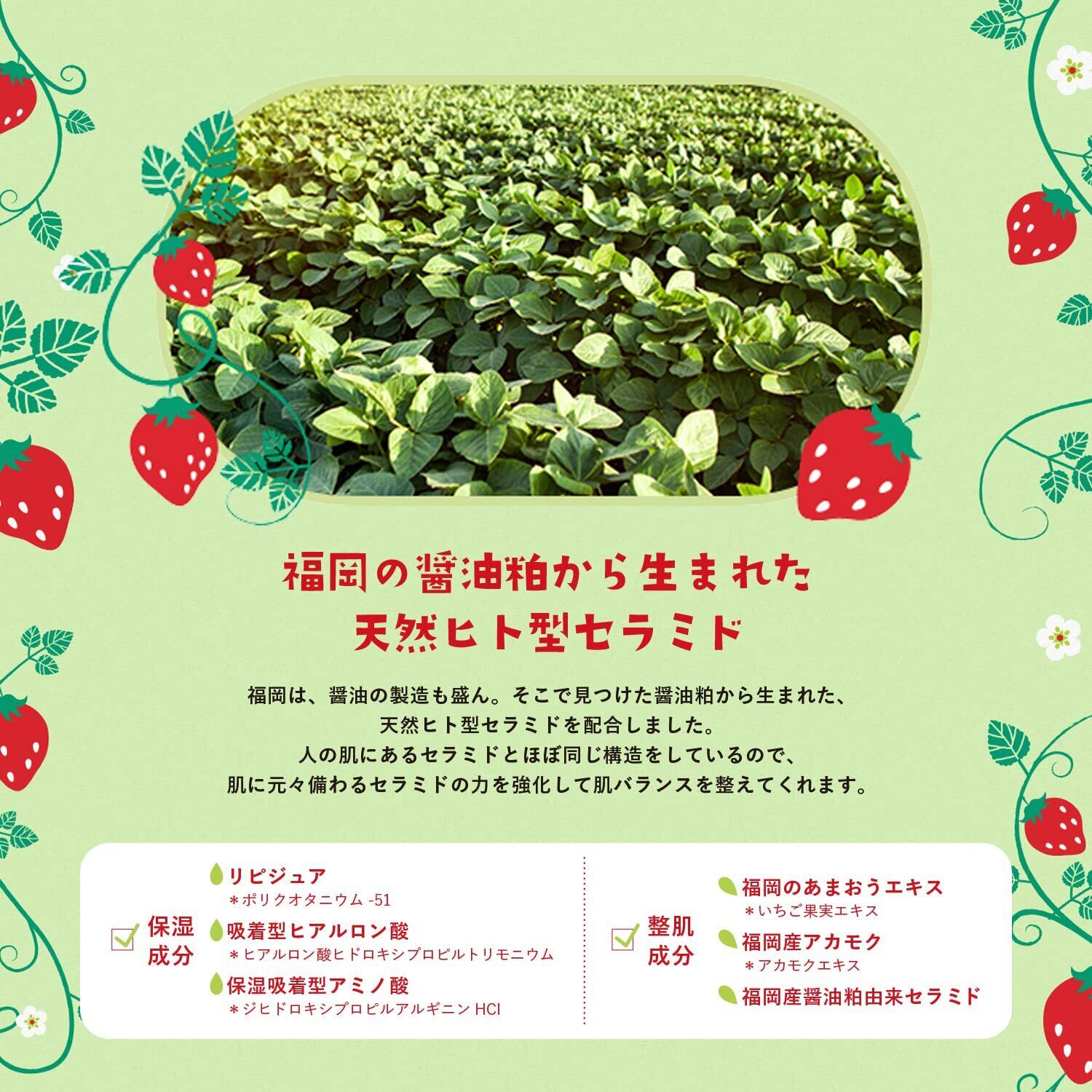 ●整肌成分:福岡酸あまおうエキス、福岡産アカモクエキス、福岡産醤油粕由来セラミド ●保湿成分:リピジュア、吸着型ヒアルロン酸、保湿吸着型アミノ酸