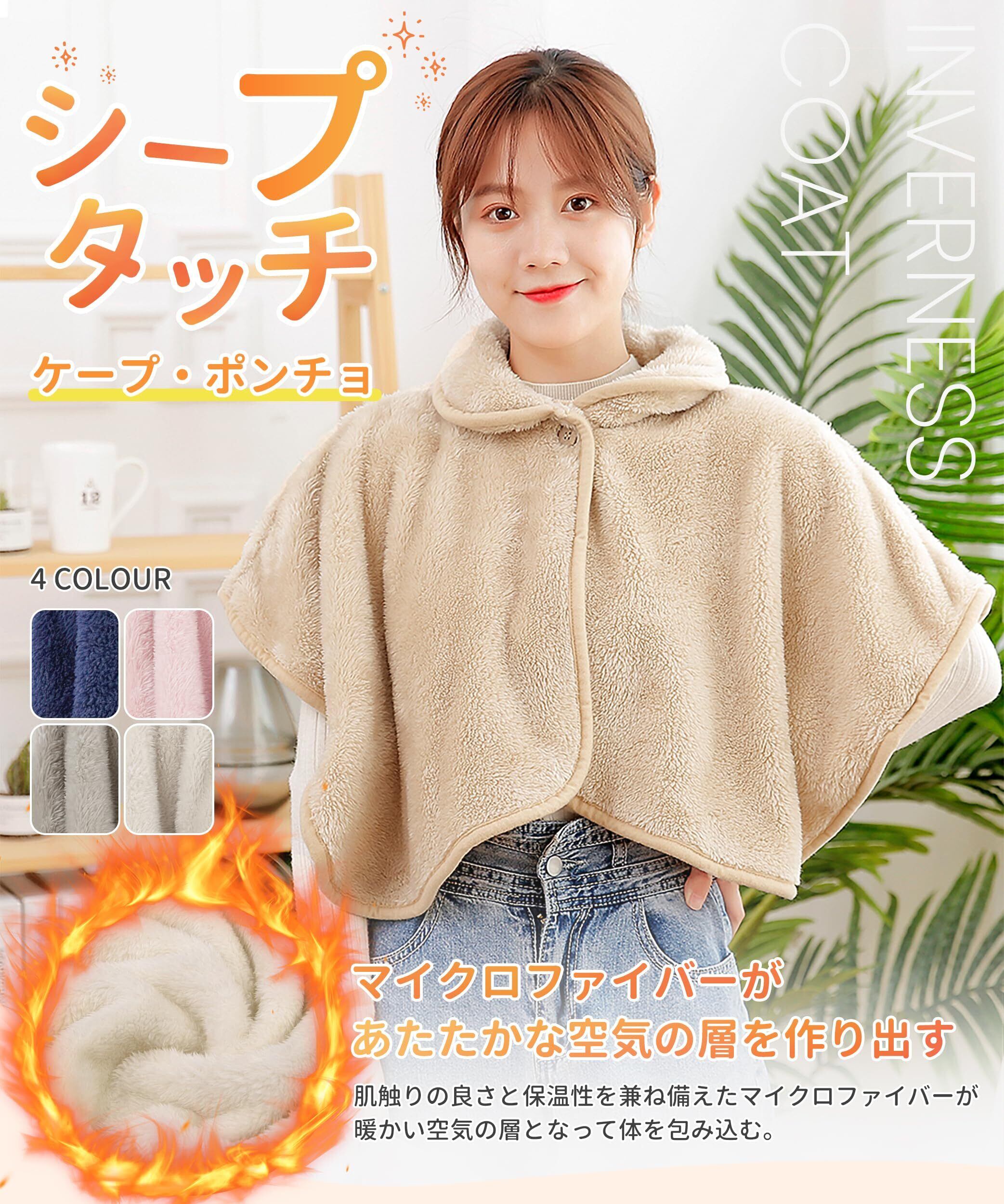 【手触りの良いケープコート登場!】ルームウェアはふわふわで柔らかい素材が使用されており、肩をしっかりと暖かく包み込みます。肌触りが非常に良く、チクチク感がなく、快適さが持続するルームウェアです。柔らかくしなやかな素材が肩に心地よくフィットし、滑らかで軽やかな感触が長時間の着用でもストレスを感じさせません。冬の寒さから体を守るため、冷たい風や寒さを防ぎ、快適な温かさを提供します。あったかケープを一枚持っているだけで、冬のアクティビティがより快適になります。