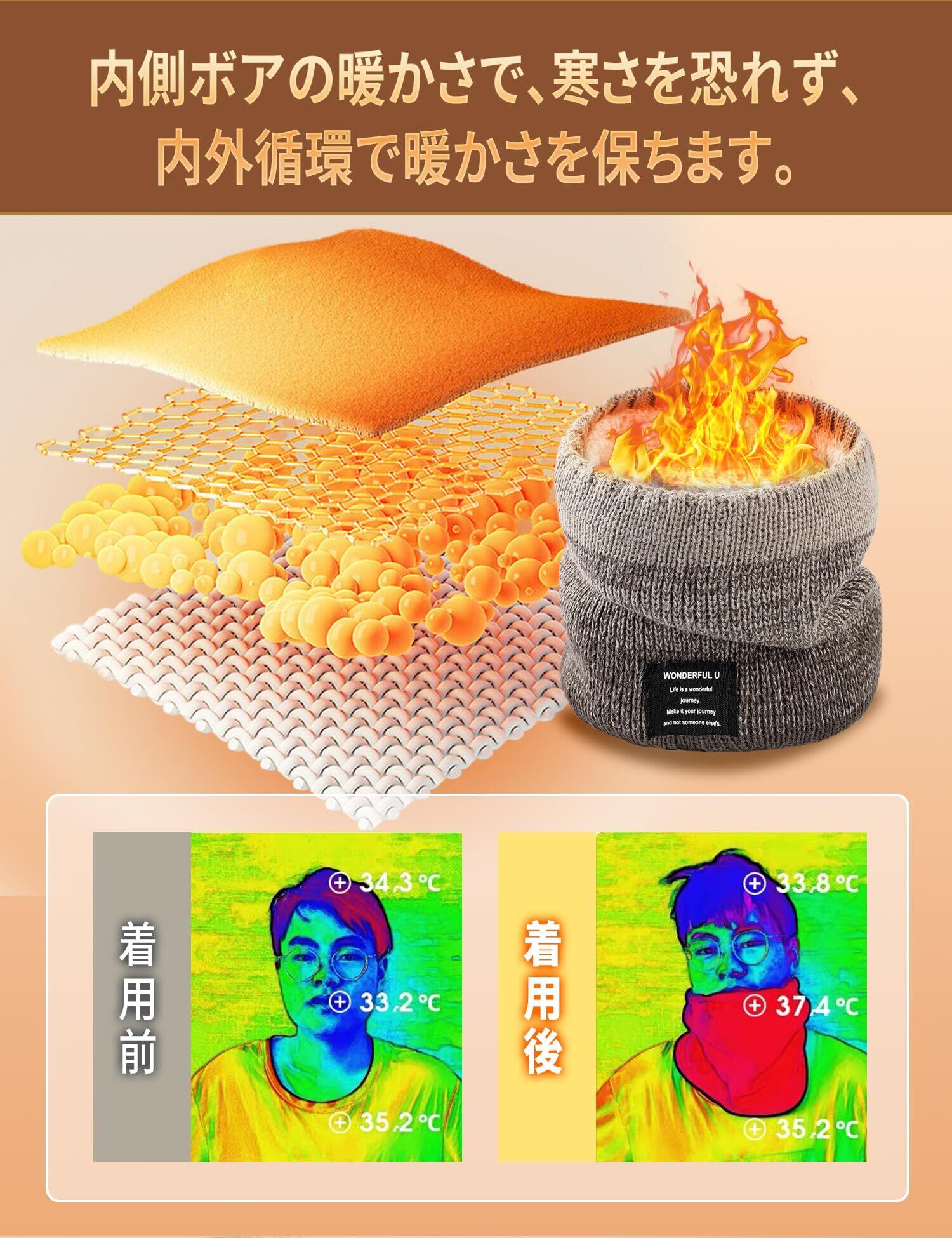 【二重構造】このネックウォーマーは、外側に耐久性のある防風素材を採用しており、強風や寒風を効果的に防ぎます。これにより、厳しい冬の日でも暖かさを損なうことなく過ごせます。