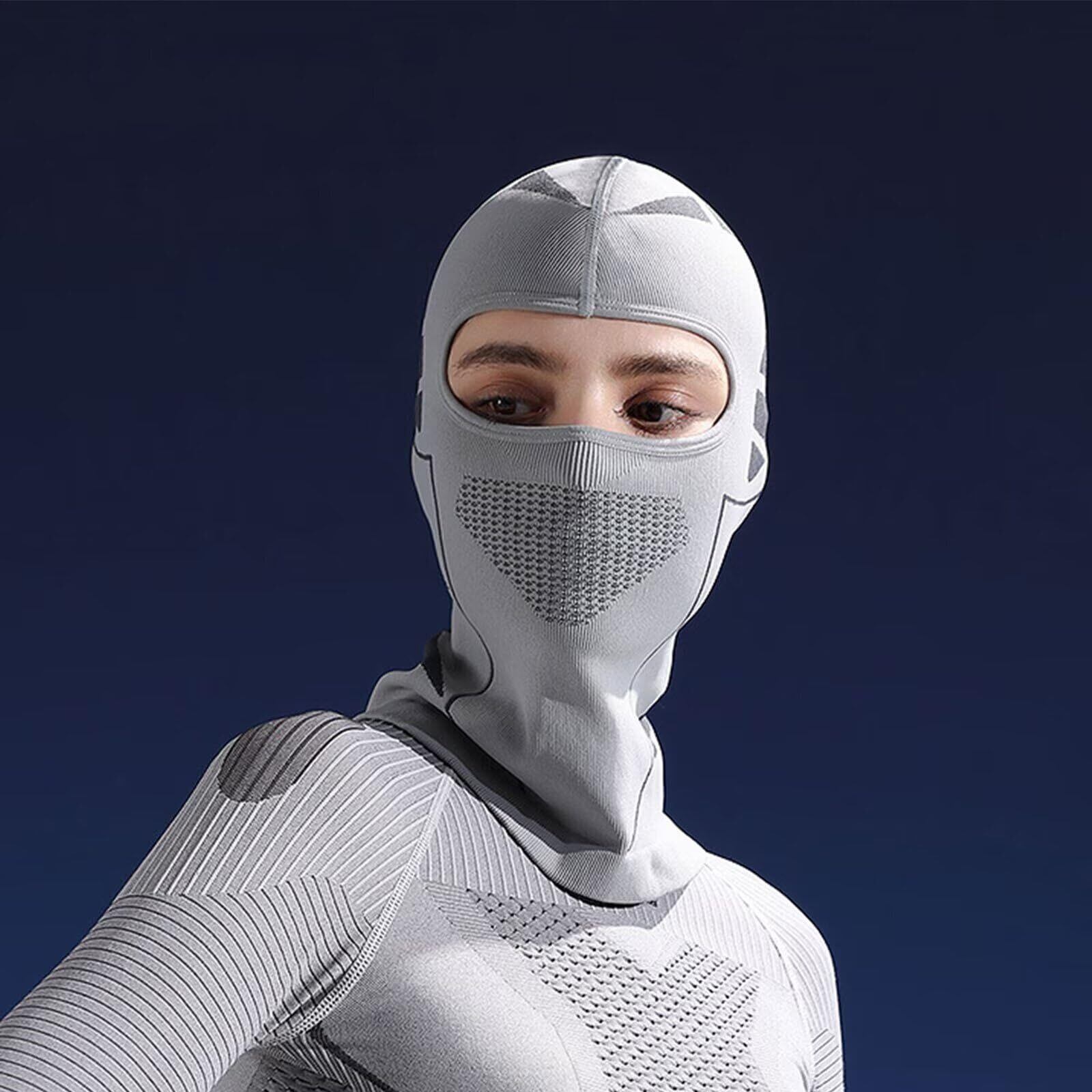 【保温防寒】目元以外の顔全体を覆い隠し、寒さから身を守る防寒着です。冷気が侵入しにくく保温効果が高いです。首元はフレア状に作られており、隙間風が入らないように工夫。