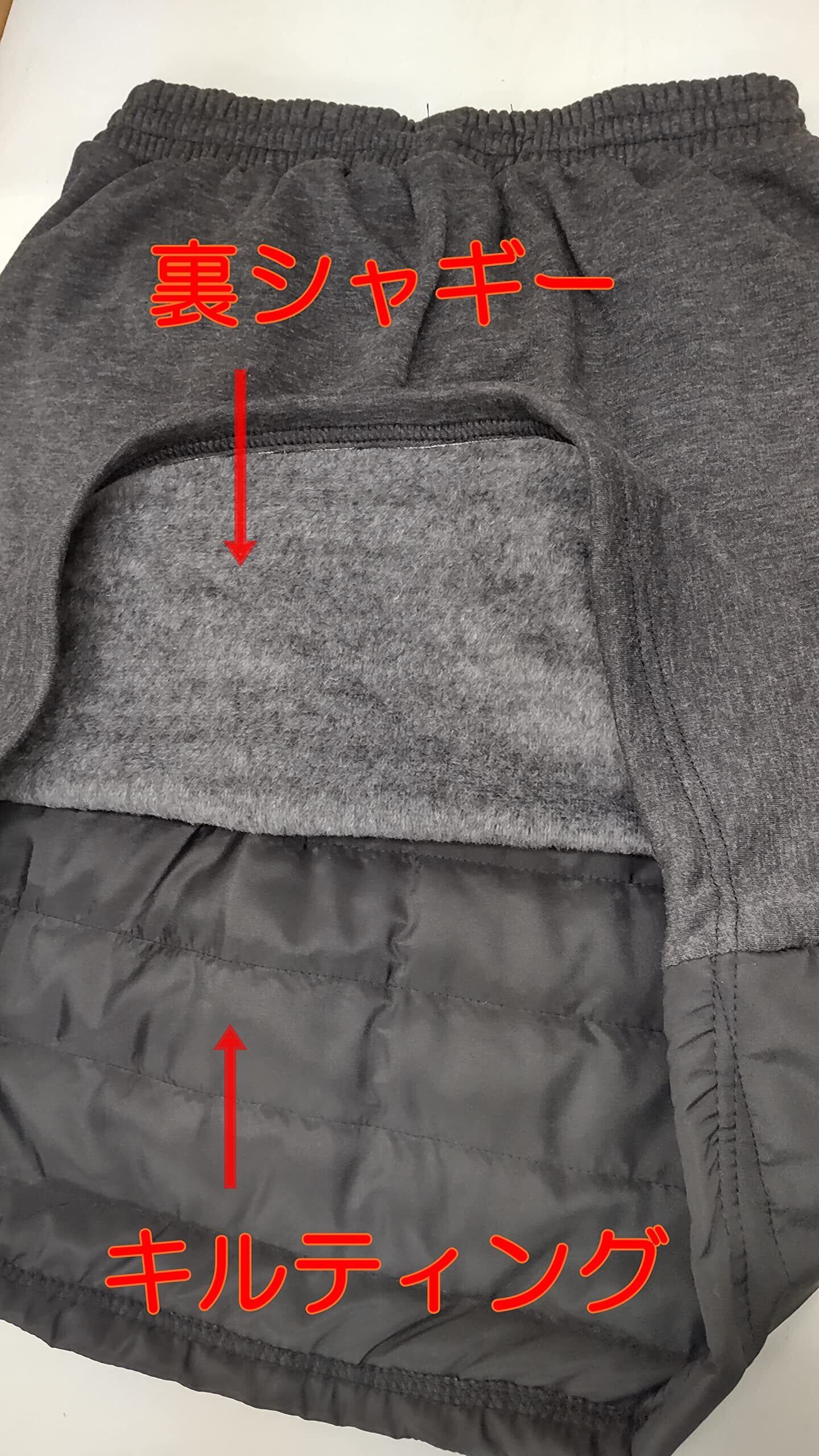 前側のキルティングがブラックとネイビー、後側がブラックとチャコールの組み合わせからお選びいただけます。