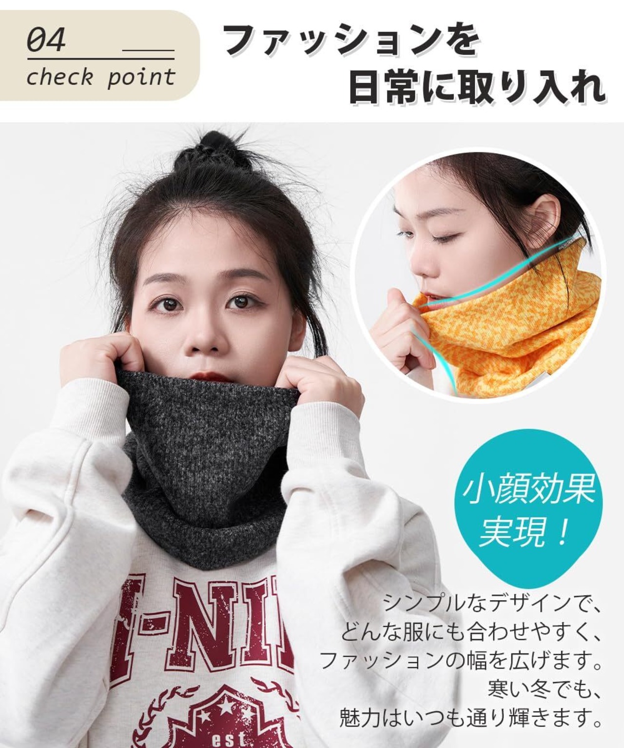 【柔らかい・肌触りよい】当店のネックウォーマーはしっかりした作りと適度な厚みに加え、首周りを包み込む軽い被り心地です。毛むくじゃらの手触りは極めて柔らかく肌触りがよく、温もりも抜群です。裏面には繊細で柔らかい生地を使って、肌触りがやさしく、首周りや敏感な顔に当たってもチクチク感なく、気持ち良く着けます!秋から冬場にアウトドアや旅行に参加する心配がなくなります。