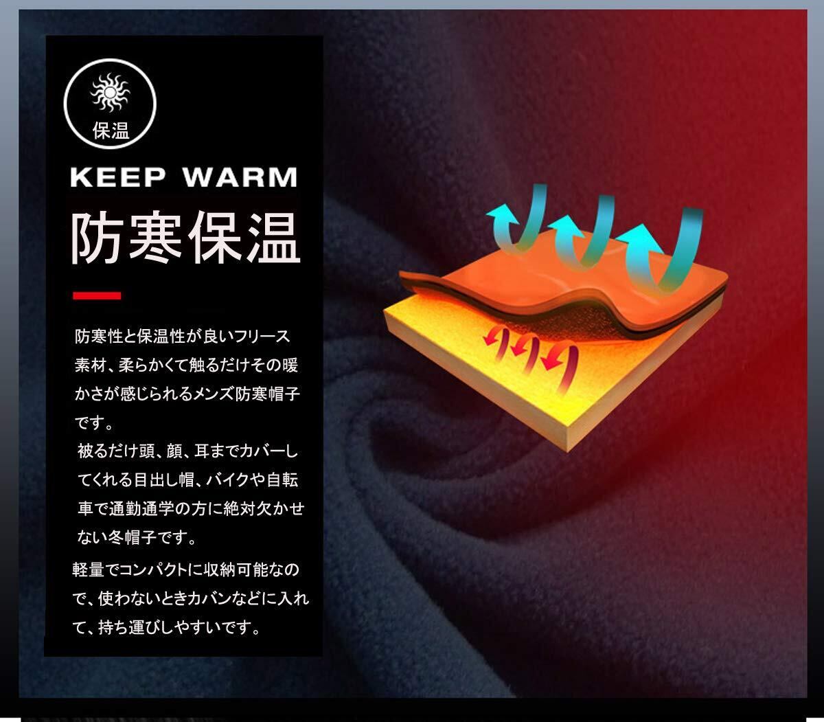 【防寒性】防寒性と保温性が良いフリース素材、柔らかくて触るだけその暖かさが感じられるメンズ防寒帽子です。口カバーと耳あて付いているキャップ帽子、頭から顔まで全部覆ってくれて、実用性が高いです。人体工程に基づいたから、頭によくフィットします。