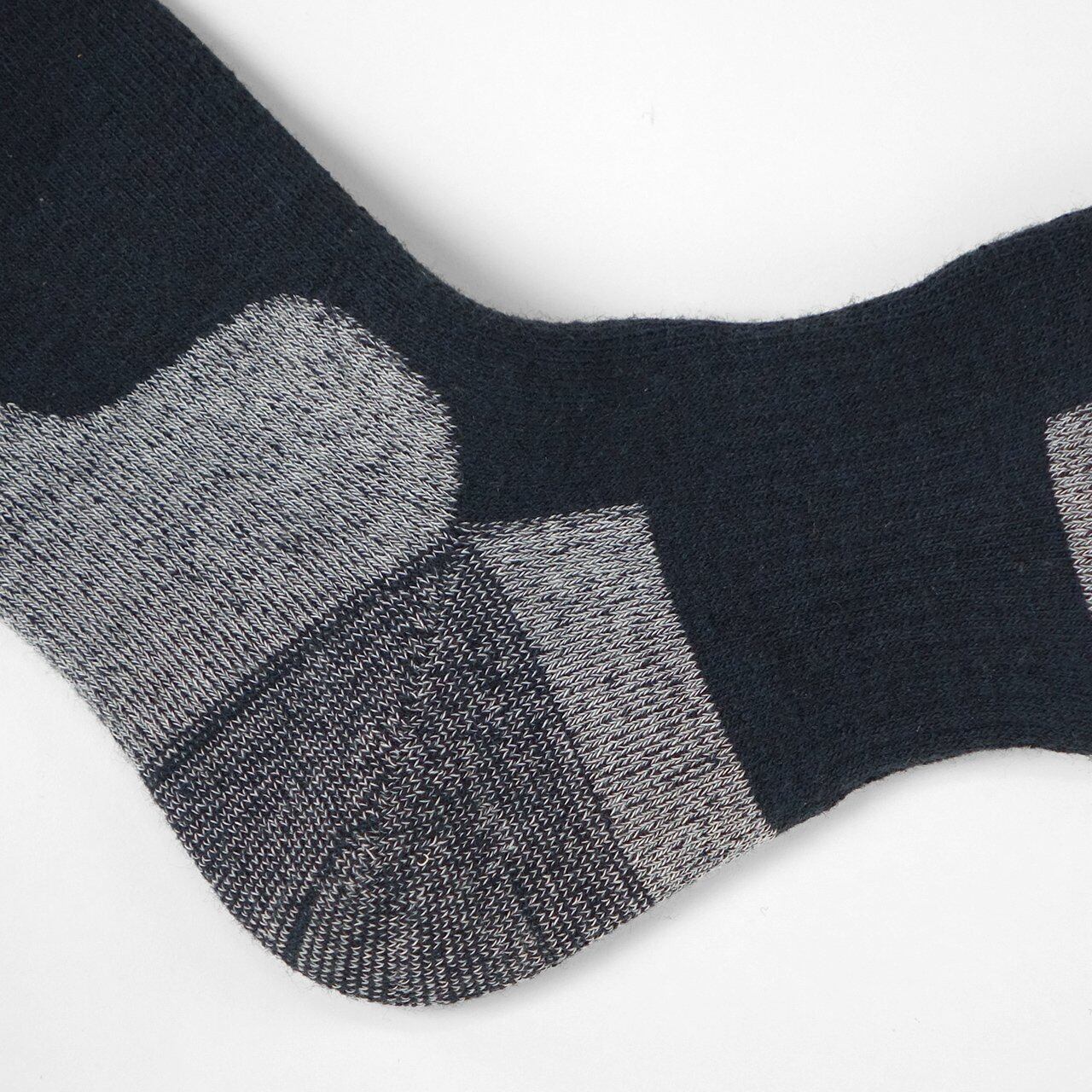 淡色部分は吸湿発熱繊維を使用。冷えを感じやすいつま先・アキレス腱・くるぶしを水分(汗)との反応で集中的に保温。しかもその繊維が直接肌に触れない特殊編みなので爽やかな着用感です。 NHK朝の番組でも紹介されました。