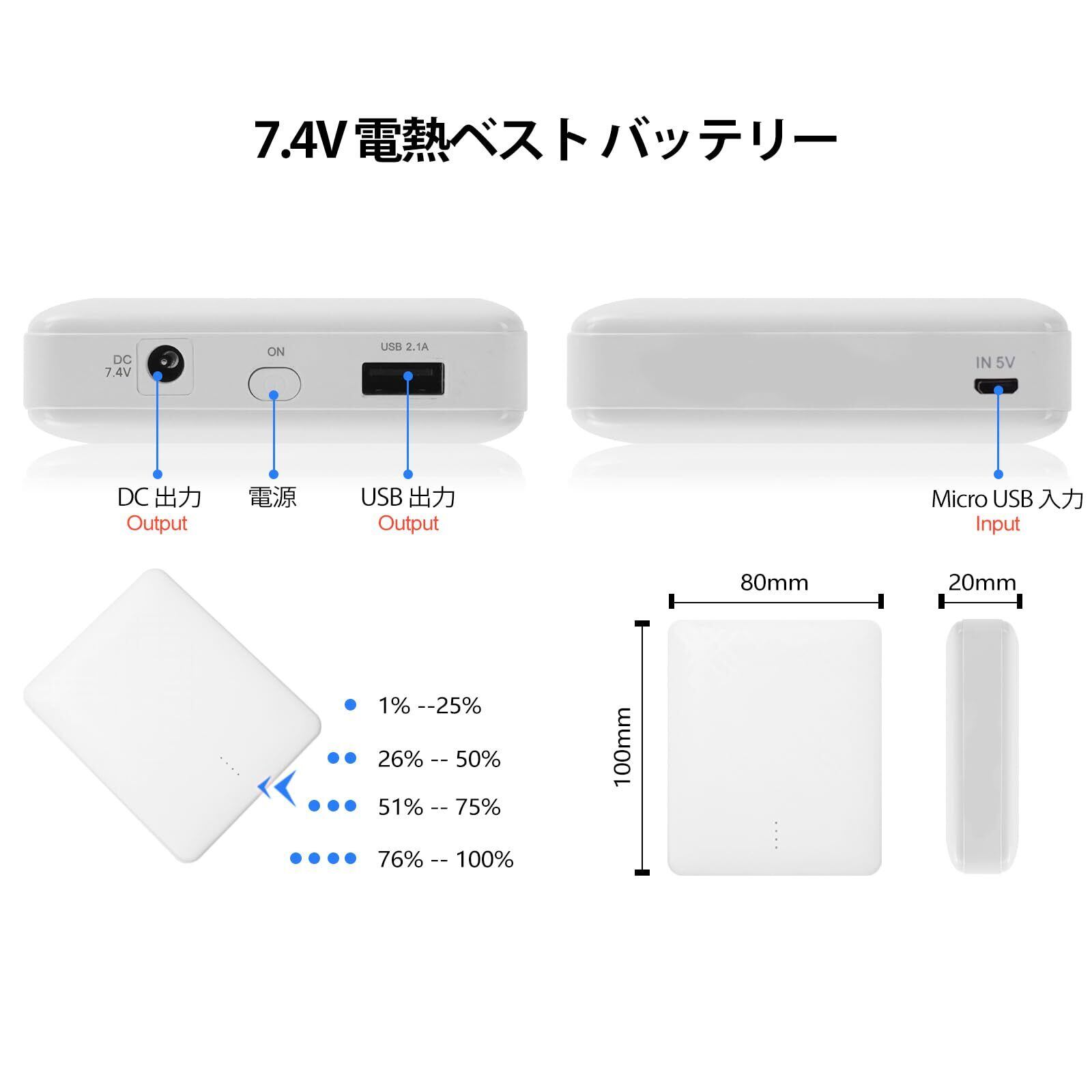 【利便性が抜群】高品質なリチウムポリマーバッテリーで、10000mAhの大容量で一度フル充電すれば、ヒーターベストのバッテリーとして約5-10時間を持ちます。出勤と旅行の時に最適です。