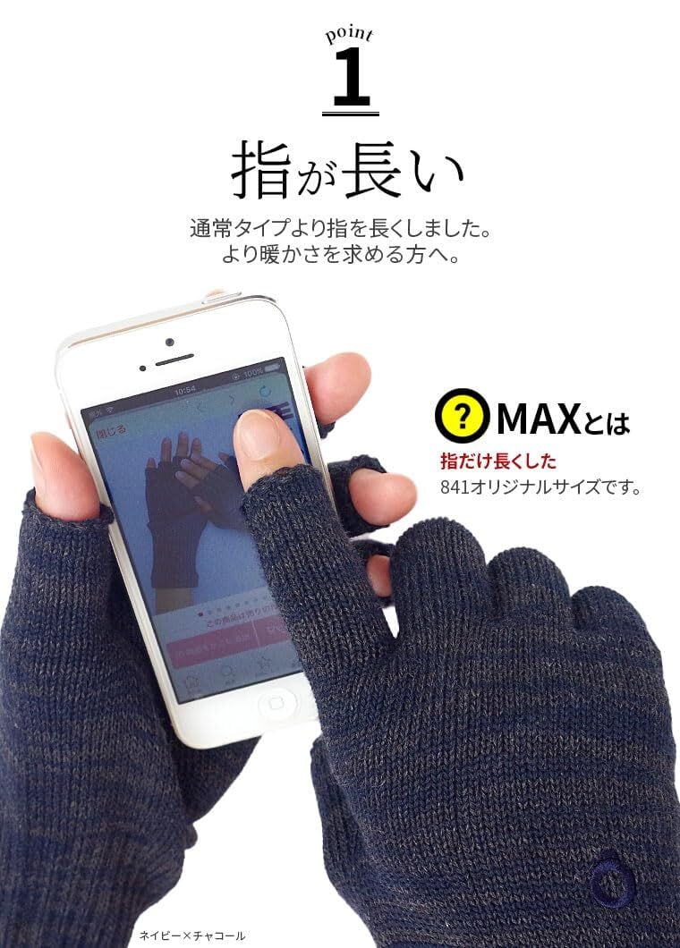 特徴:厚手で指長タイプのMAXです。【841 ハンドウォーマー】よりも、「もう少し厚いものが欲しい」「ちょっと手首部分がきつい」「男性でも使えるサイズを」というリクエストにより完成した【ハンドウォーマー《厚手》】の指を長くした【ハンドウォーマーMAX 《厚手》】もお作りしました。