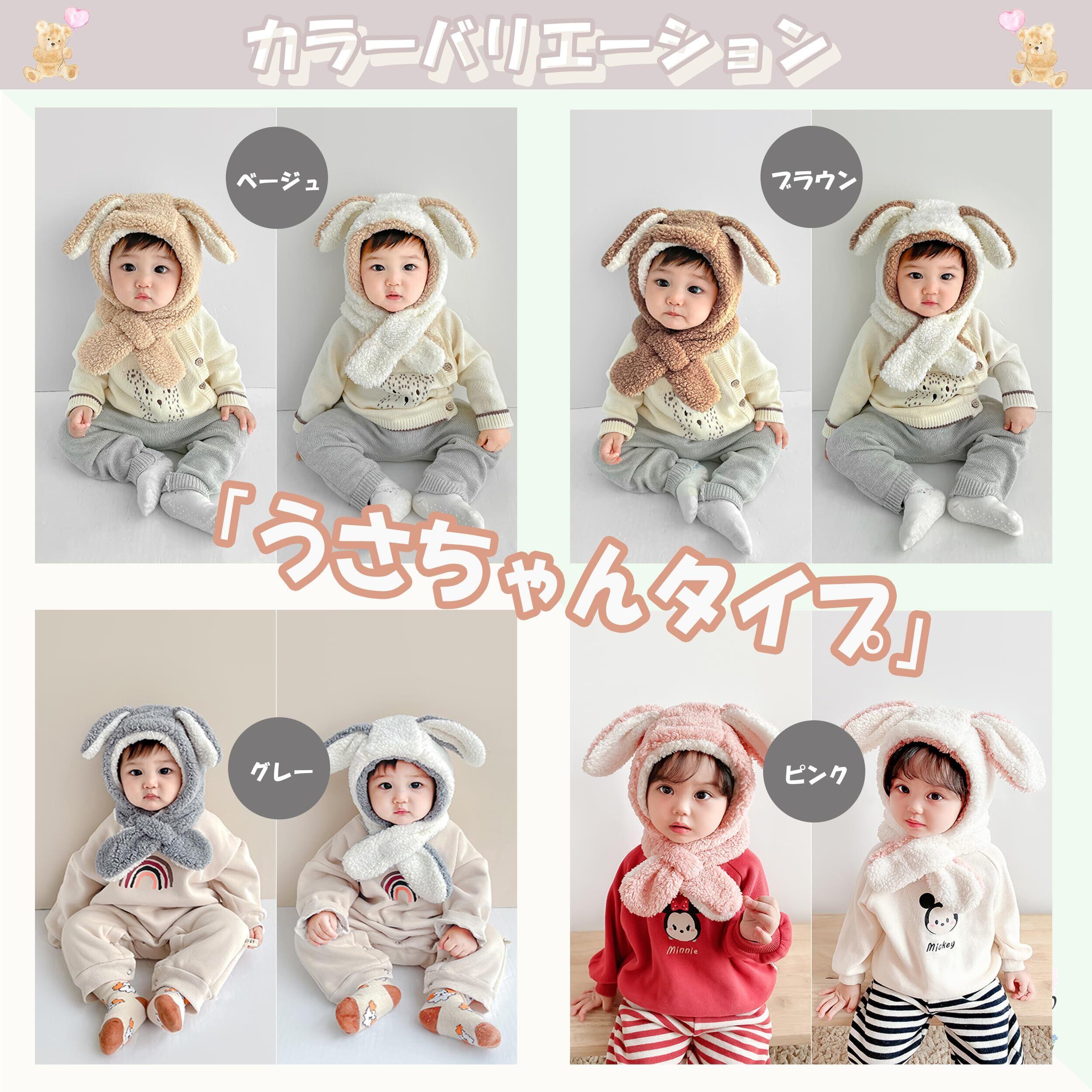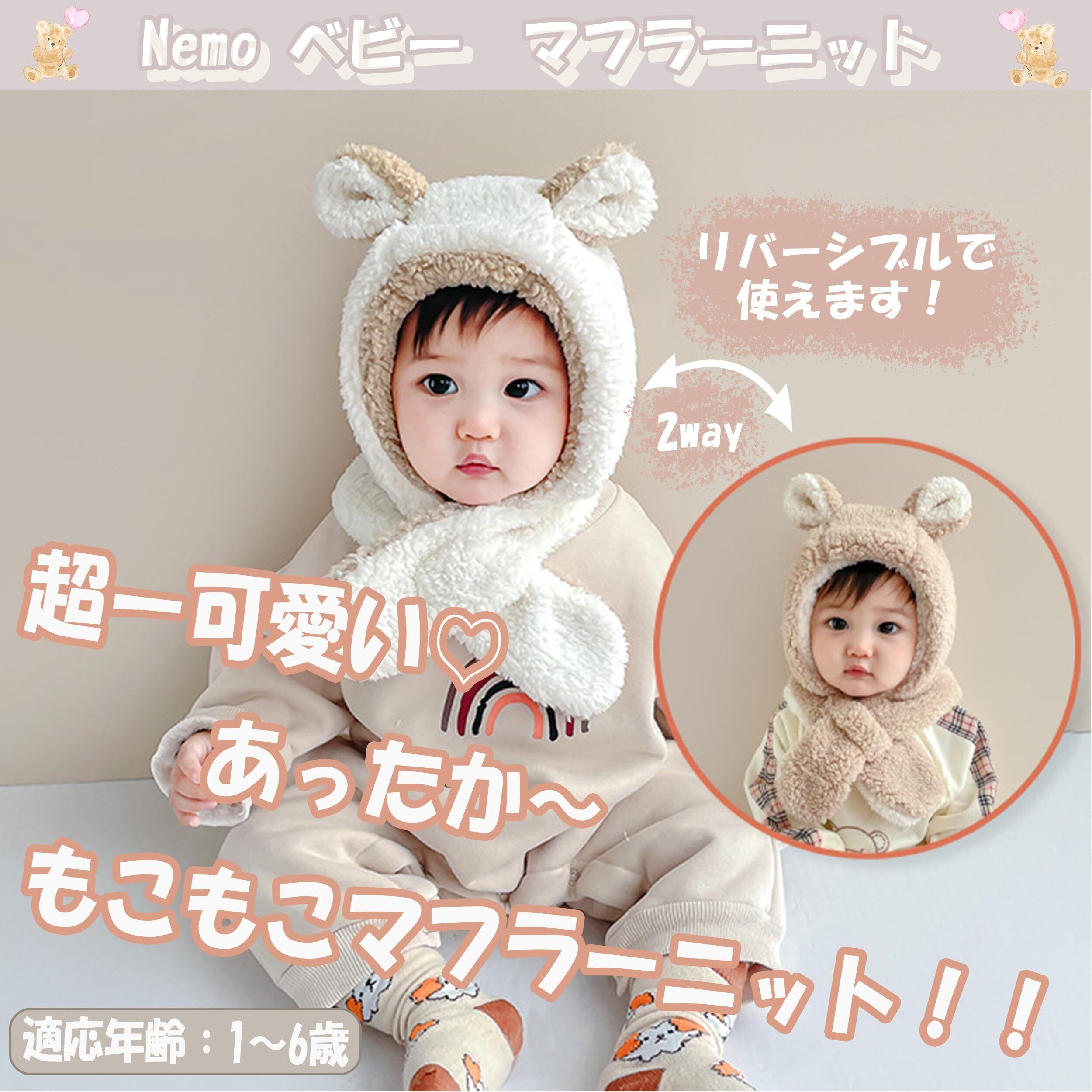 [Nemo] ベビーニット ニット帽 帽子 マフラーニット マフラー型ニット マフラーニット一体型 マフラー付ニット うさぎ くま 耳 ベビー キッズ 子供 子ども ユニセックス 防寒対策 冬 もこもこ あったか 出産ギフト ギフト プレゼント お洒落 可愛い