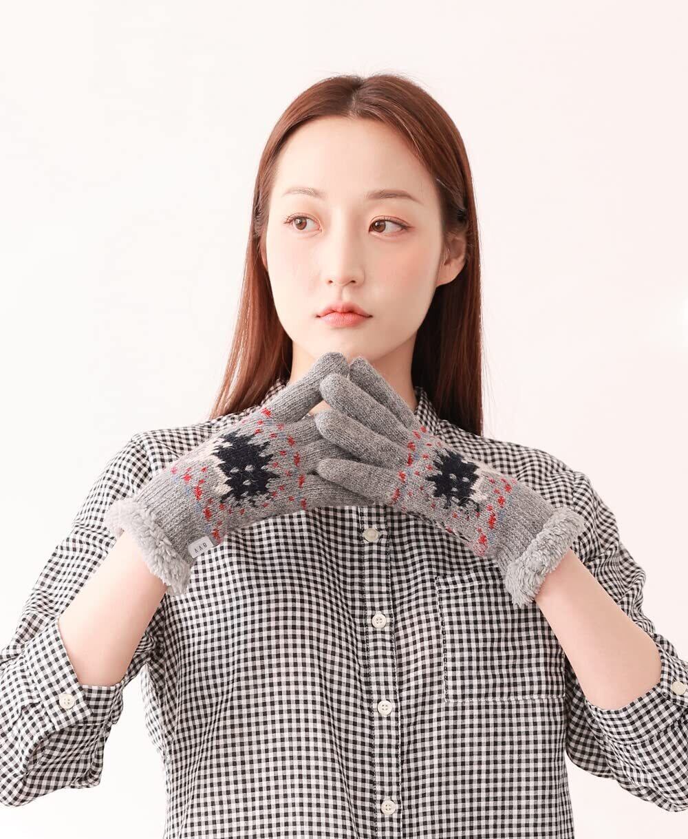素材構成: 表地:アンゴラ・ウール・ナイロン, 裏地: 100% ポリエステル 中国製 サイズ:FREE 寸法:全長24cm 中指長さ8.5cm 甲幅8.5cm 裾幅9.5cm カラー:グレー・レッド a.v.vブランドの可愛いハリネズミ柄のニット手袋になります。 柔らかで肌触りのいいアンゴラ糸をミックスしたニットを使っておりインナーにはモコモコふわふわ感満載のボアフリースを使用しています。 a.v.vのロゴ入りケースに入れて発送しますのでプレゼントにもお勧めです。