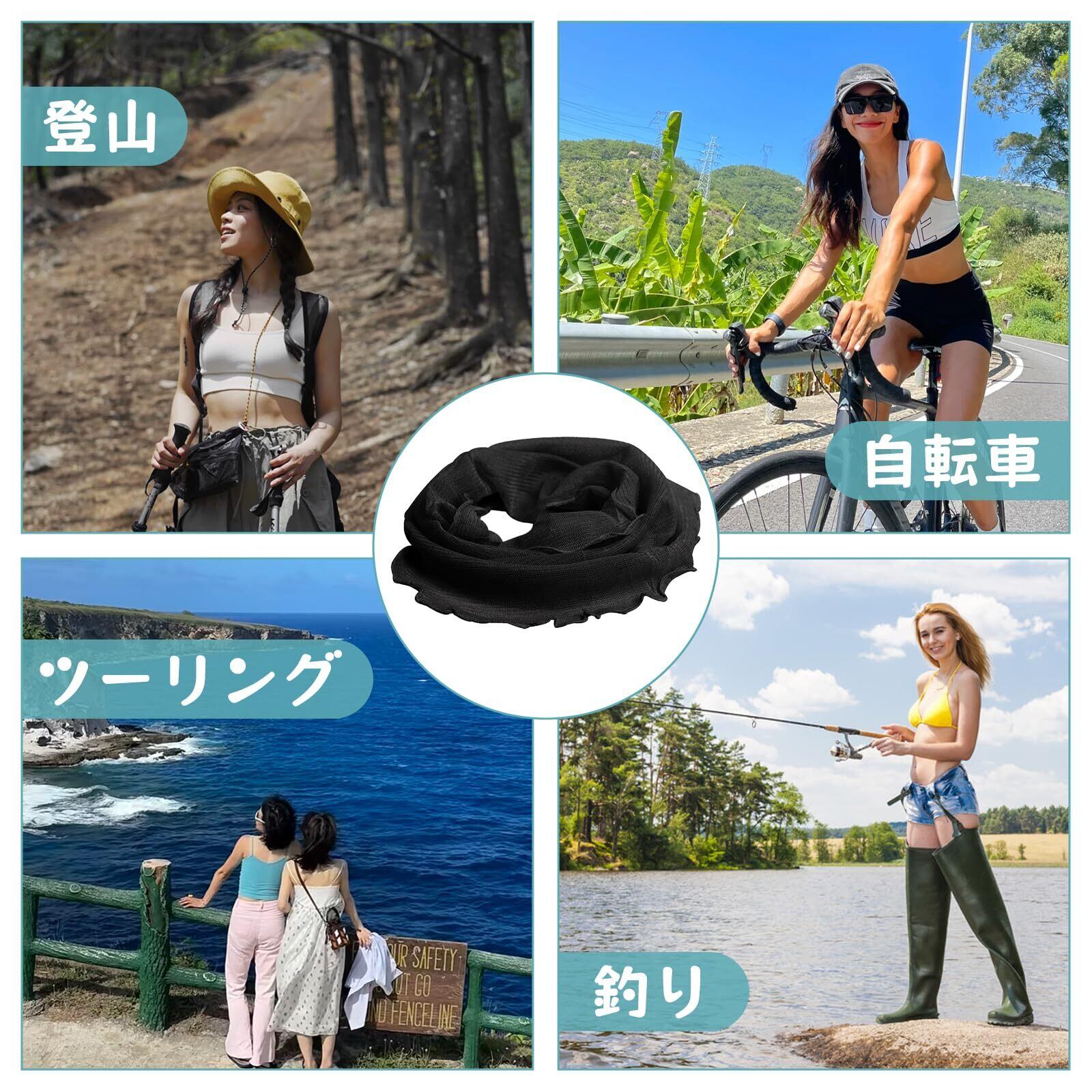 【ネックカバー】ネックカバーは必須 強い日差しから首元を守り、防寒、吸汗、いつでもサラサラ、サラサラのシルク生地。ストレッチチュールネット素材を使用していますので夏でも快適に日差しをガードしてくれます。気になる首もとをオシャレに日焼け防止。