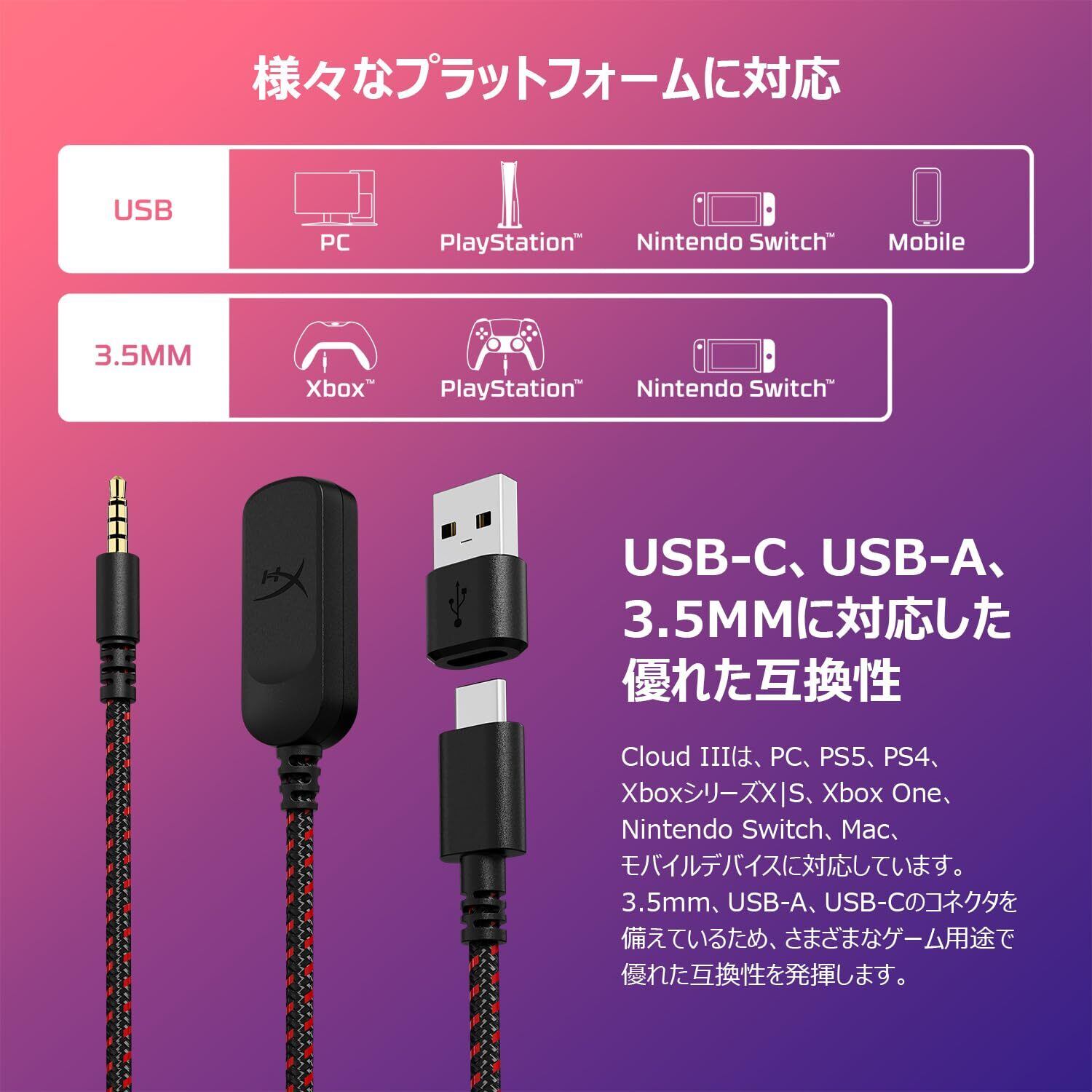 ◆◆ ハイパーエックス HyperX Cloud III ゲーミングヘッドセット ◆DTS Headphone:X 空間オーディオ ◆53mmドライバー搭載 ◆快適装着 ◆ブラック ◆PC・PS5・PS4・Xboxシリーズ・Nintendo Switch・モバイル対応 ◆国内正規品