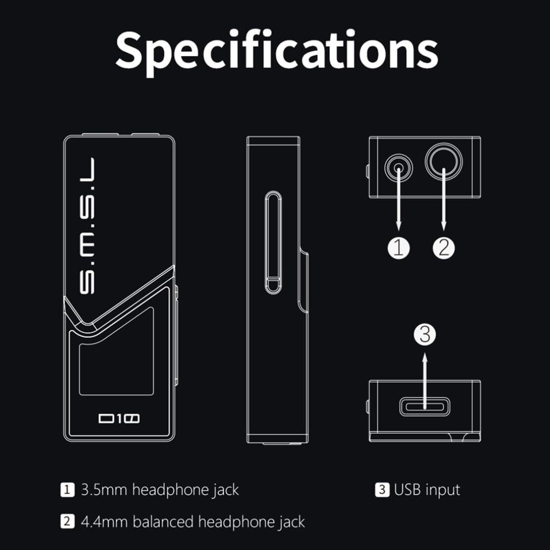 ◆◆ SMSL D10 USB CからAUXへのヘッドホンアンプ ◆2つのCS43131チップ ◆ドングルDACアンプ ◆3.5mm/4.4mmバランスヘッドホンジャック ◆DSD256 32ビット/384kHz ◆黒色
