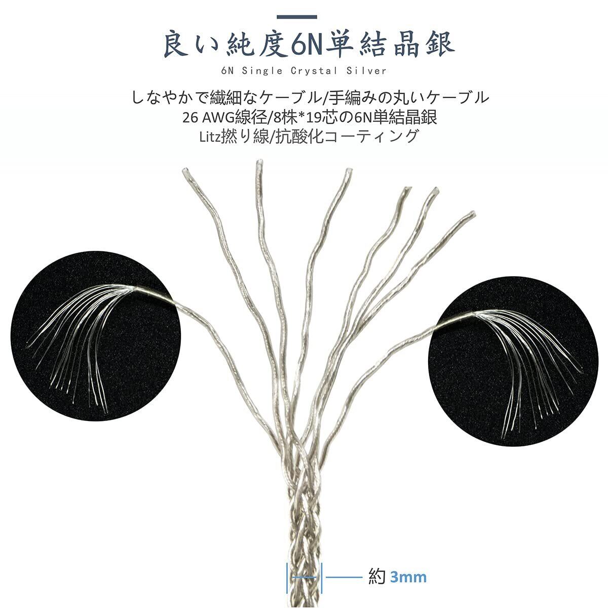 ケーブルは6N単結晶銀を採用しており、導体ごとにカスタマイズされたアニールにより、特に柔らかい状態になります。ケーブルカバーは無公害のPVCを採用しています。耐久性と耐変色性に優れています。ケーブルの長さは約1.8mです。