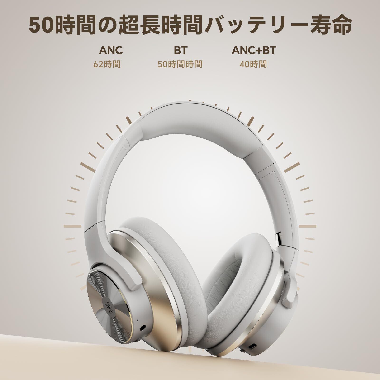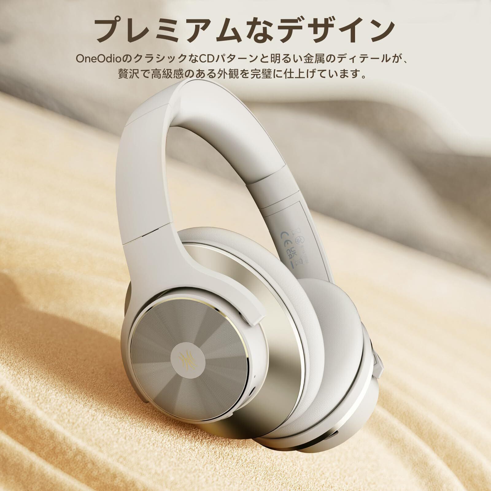 OneOdio A10 ワイヤレスヘッドホン アクティブノイズキャンセリング Bluetooth ヘッドフォン オーバーイヤー マイク付き 最大62時間再生 外音取り込み機能 重低音 ハイレゾ音源対応 急速充電 折り畳み式 密閉型 ホワイト