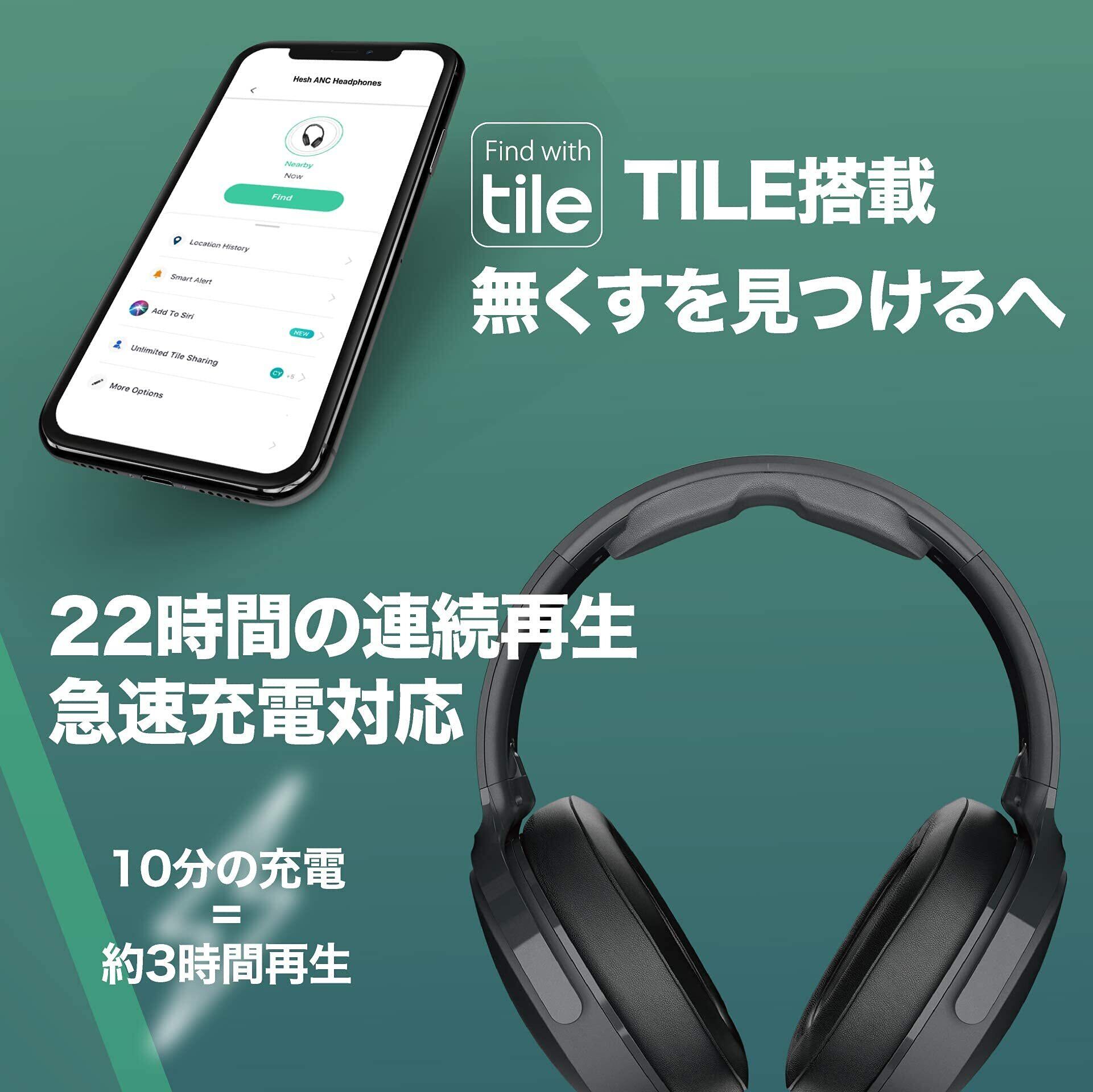 Tile搭載 無くすを見つけるへ 搭載された忘れ物防止アプリ「Tile」がヘッドホンを紛失した際に接続が切れたおおよその場所を追跡。ヘッドホンからアラーム音を出し検索も可能です。
