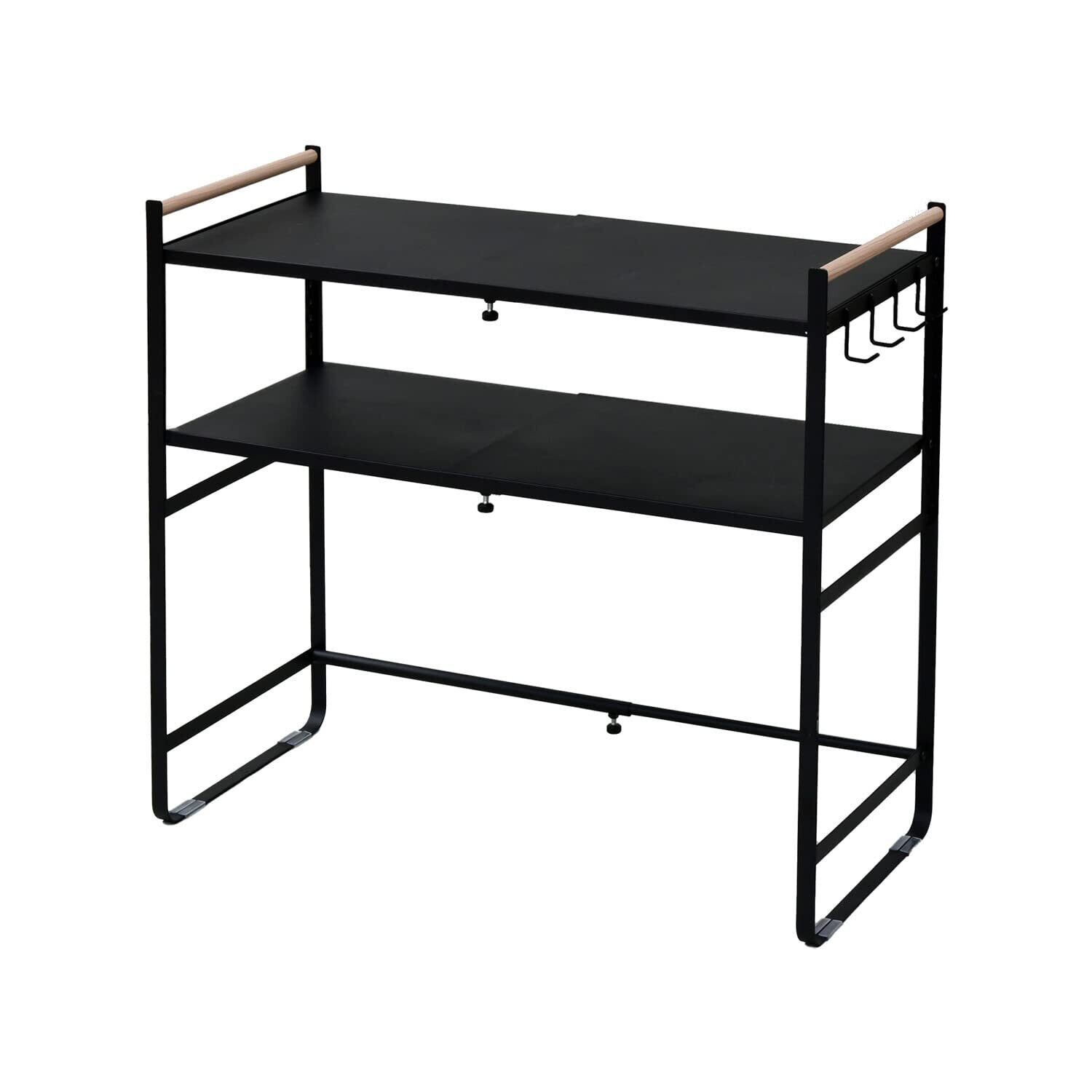 ◆◆ 山善 (YAMAZEN) レンジ上ラック ◆レンジラック ◆幅伸縮 ◆棚板高さ調節15段階 ◆棚板2枚 ◆フック付き ◆幅46-73cm ◆奥行35.5cm ◆高さ70cm ◆組立品 ◆ブラック ◆DRR-732(SBK)