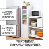 【高さ調節機能で収納力アップ!】棚板の高さは調節可能なので、収納するアイテムのサイズに合わせて使い分けができます。食器や調理器具、食品など、必要なものをしっかりと収納できます。