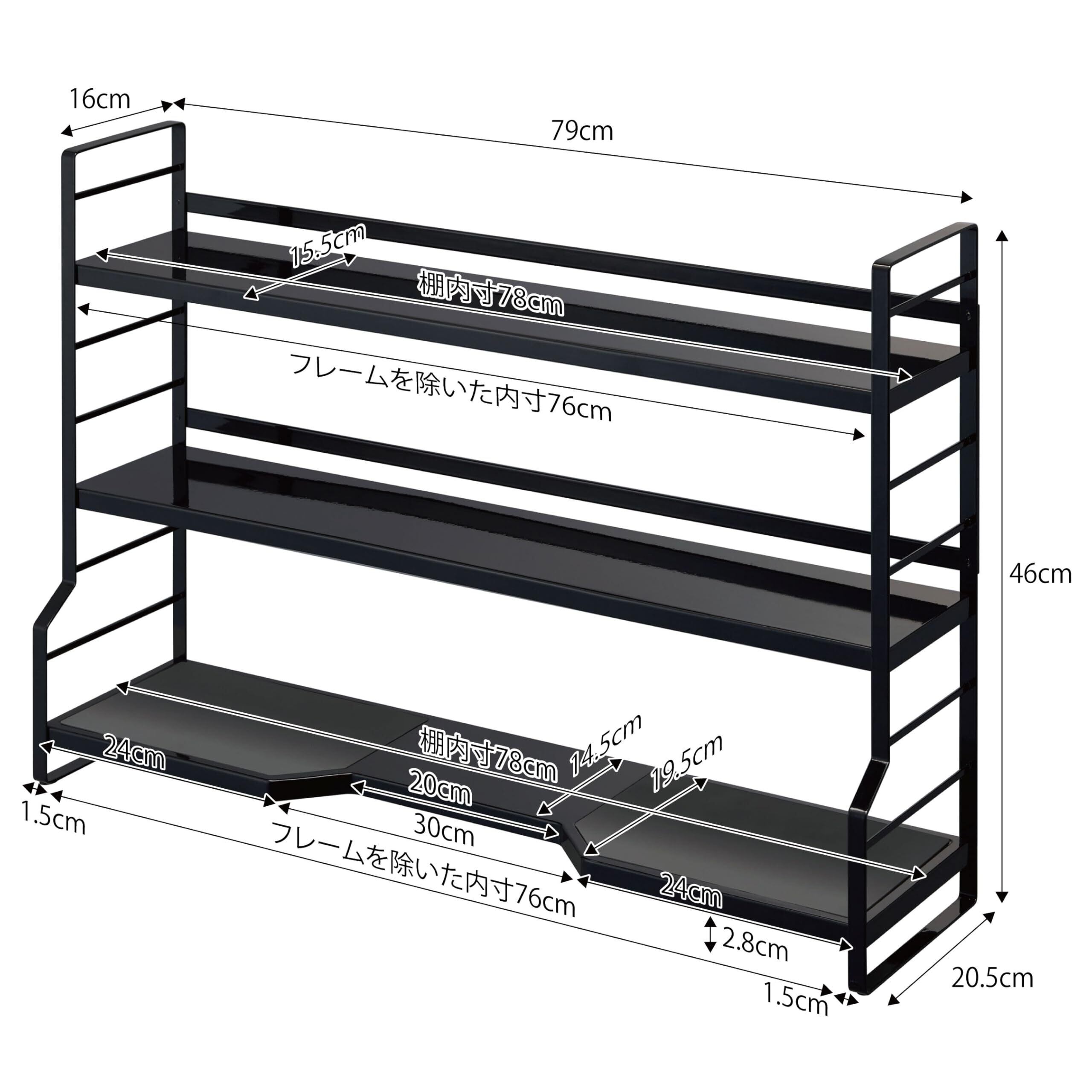 山崎実業(Yamazaki) コンロ奥ラック 3段 ブラック 約W79XD20.5XH46cm タワー tower キッチンラック キッチン収納 コンロ奥 3594