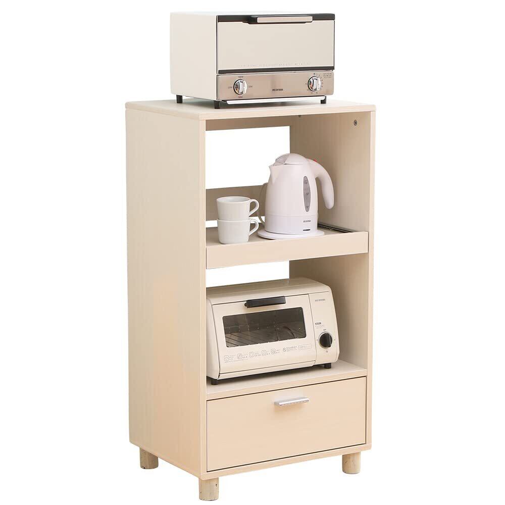 ■使いやすさを考えたスライド棚!■ 自動引き出し式のスライド棚で、電子レンジやトースターの出し入れがとても簡単です。調理の合間でもスムーズにアクセスでき、活用度が高まります。