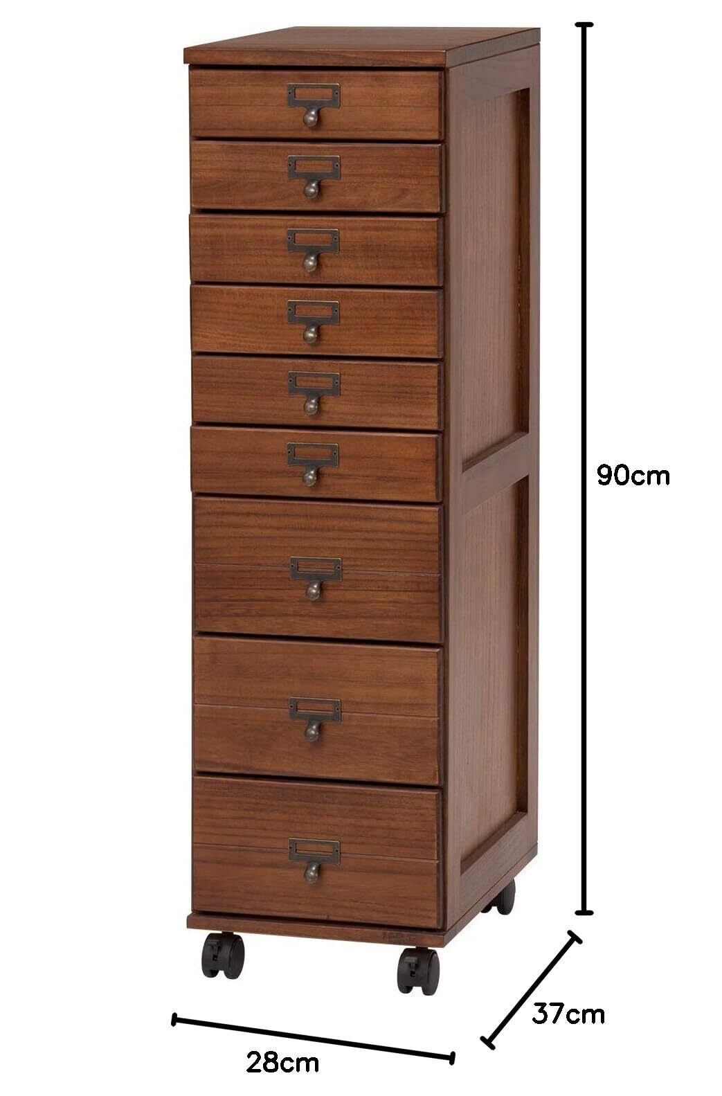 萩原(Hagihara) 多段チェスト 書類チェスト 書類 棚 A4 引出9段 【すぐに使えるほぼ完成品】キャビネット ドキュメント 天然木 ネームプレート付 キャスター付 ブラウン MCH-6171BR