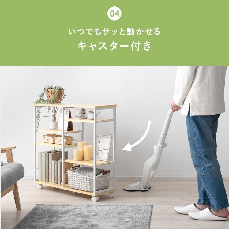 ■移動も簡単!キャスター付き!■ 本製品はキャスターが付いているため、必要な時にサッと移動することができます。キッチンでの調理道具や食材の収納に最適で、日常使いにも便利です。