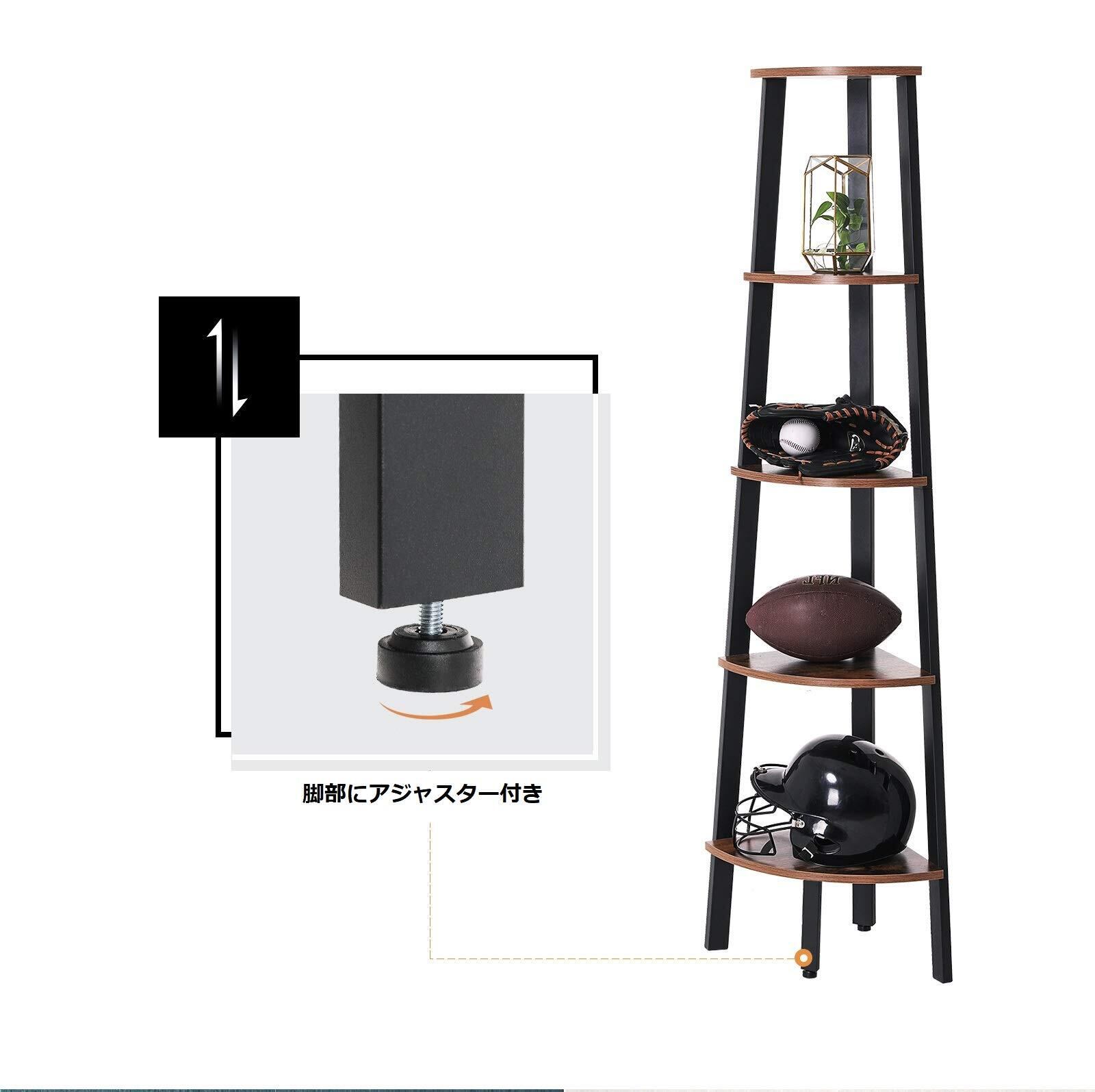 VASAGLE コーナーラック コーナーシェルフ 木製 おしゃれ 簡単組立て 収納ラック シンプル 飾り棚 スリム 花台 5段 LLS35X