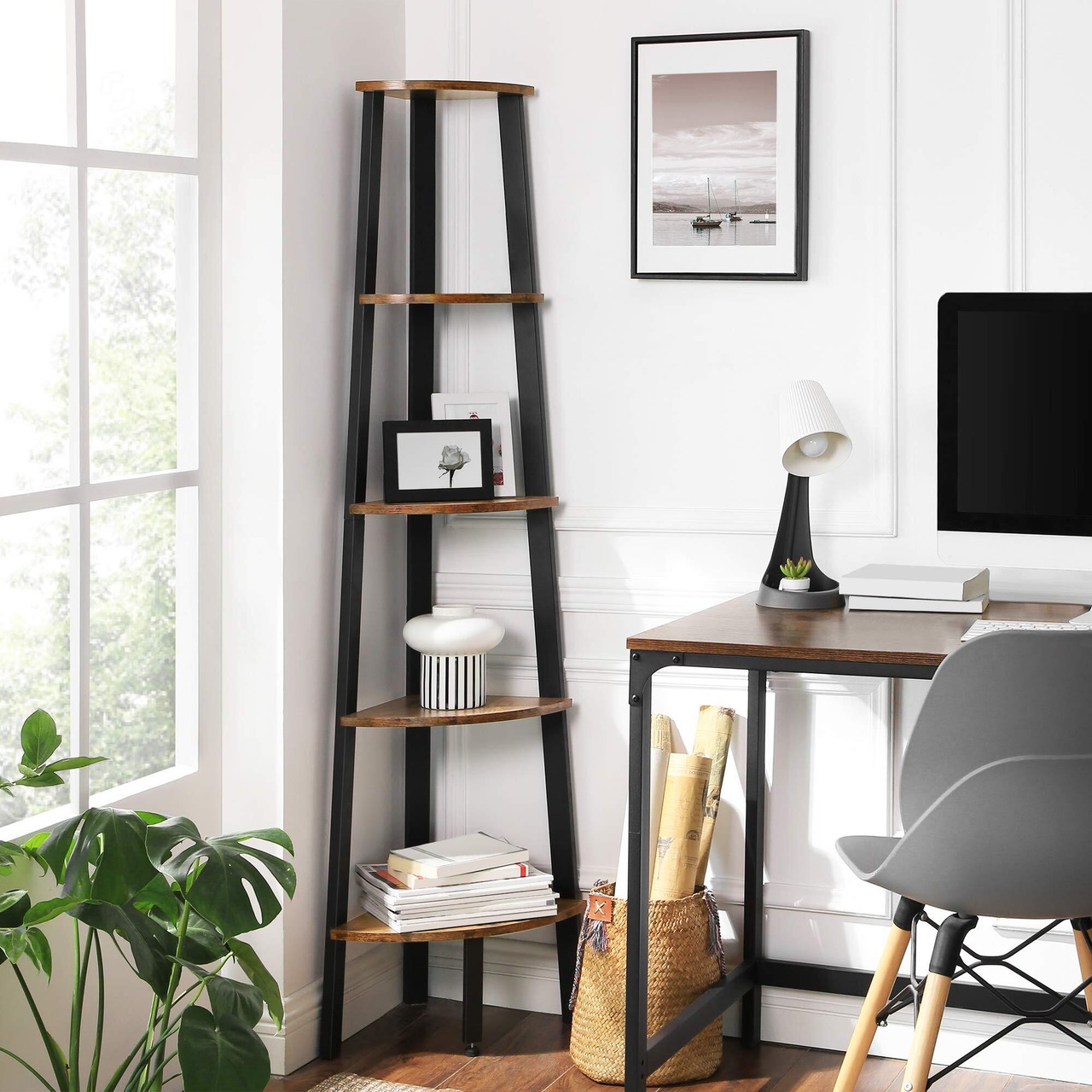 【限られたスペースを有効に活用するコーナーラック!】VASAGLEのコーナーラックは、木製の洗練されたデザインで、狭い空間でもすっきりとした収納を実現します。スリムな5段構造で、リビングや寝室、オフィスなど様々なシーンで活躍します。