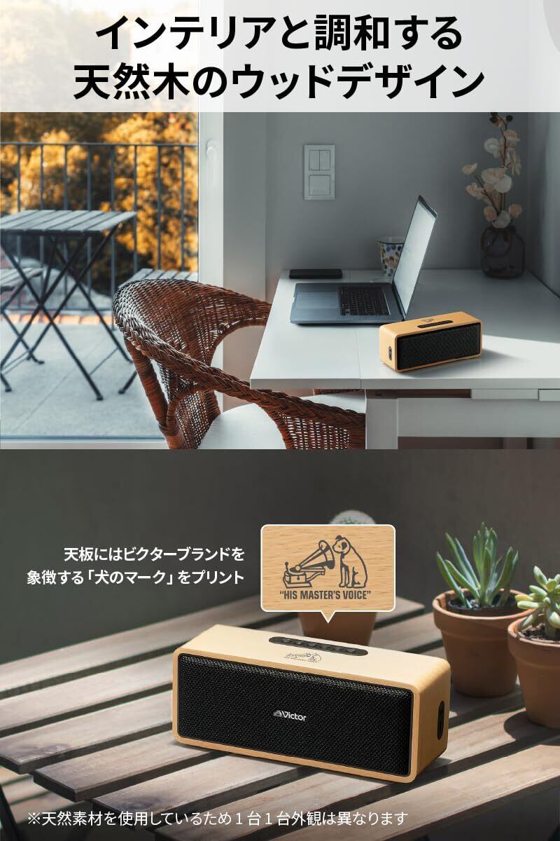 JVCケンウッド Victor SP-WS02BT Bluetooth スピーカー 小型 最大12時間再生 ステレオペアリング ポータブルスピーカー AUX対応 出力20W USB-C充電 ウッドデザイン
