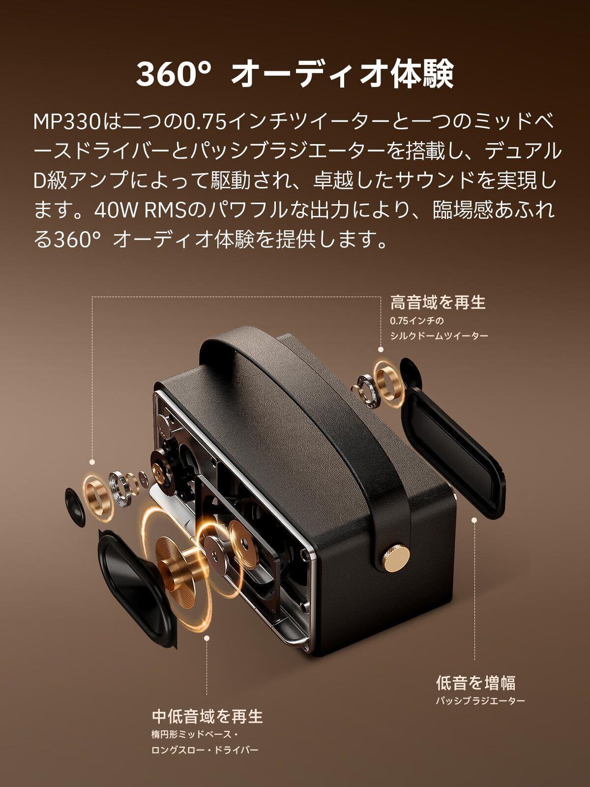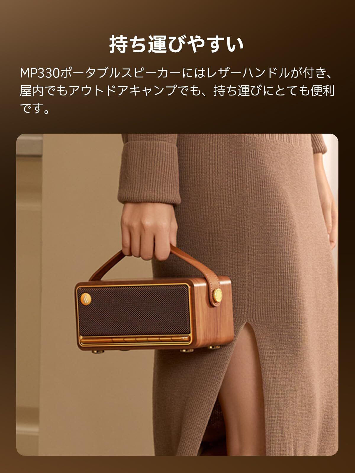 持ち運びやすい:MP330ポータブルスピーカーにはレザーハンドルが付き、屋内でもアウトドアキャンプでも、持ち運びにとても便利です