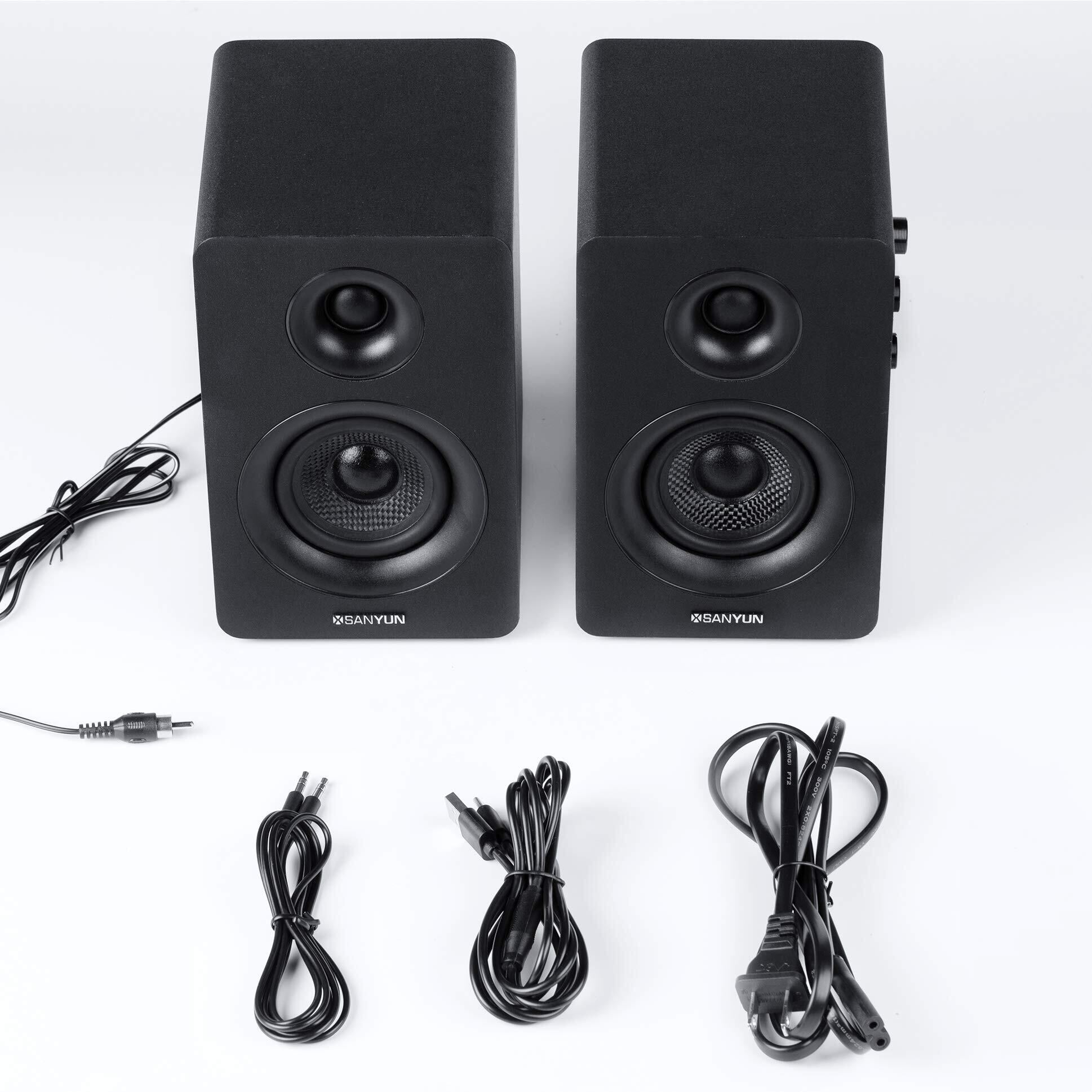 Sanyun SW208 3 "アクティブBluetooth5.0ブックシェルフスピーカー– 60Wカーボンファイバースピーカーユニット–内蔵24ビットDAC –ダイナミック3Dサラウンドサウンド– 2.0コンピューターPCモニターゲーミングスピーカー(ペア、ブラック)