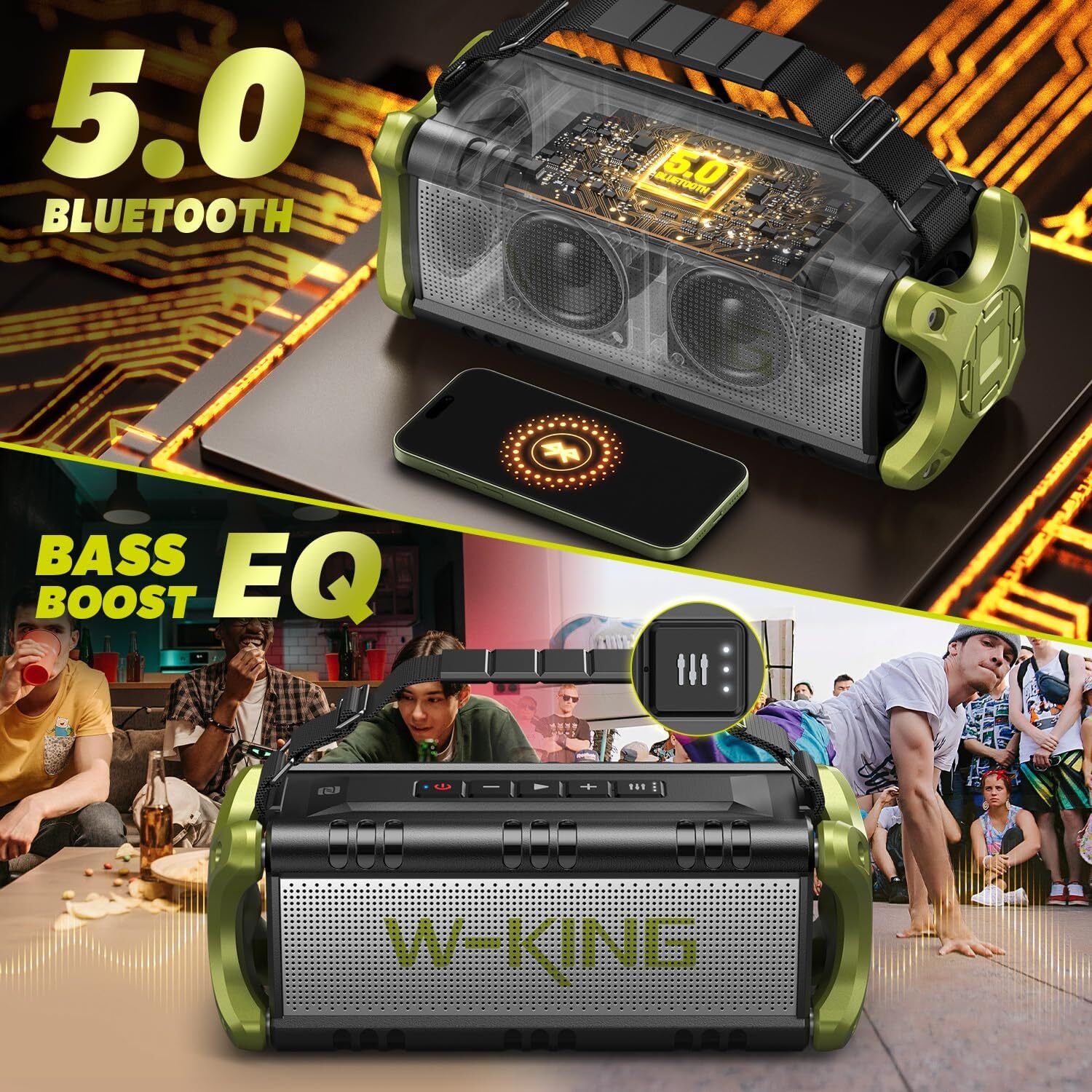 W-KING 50W Bluetooth スピーカー、IPX6 防水ポータブルスピーカー、ワイヤレススピーカー bluetooth 重低音、【40時間連続再生/強化された低音(イコライザー)/2台ペアリング/パワーバンク/Bluetooth 5.0/マイク内蔵/TFカード対応/AUX/NFC】
