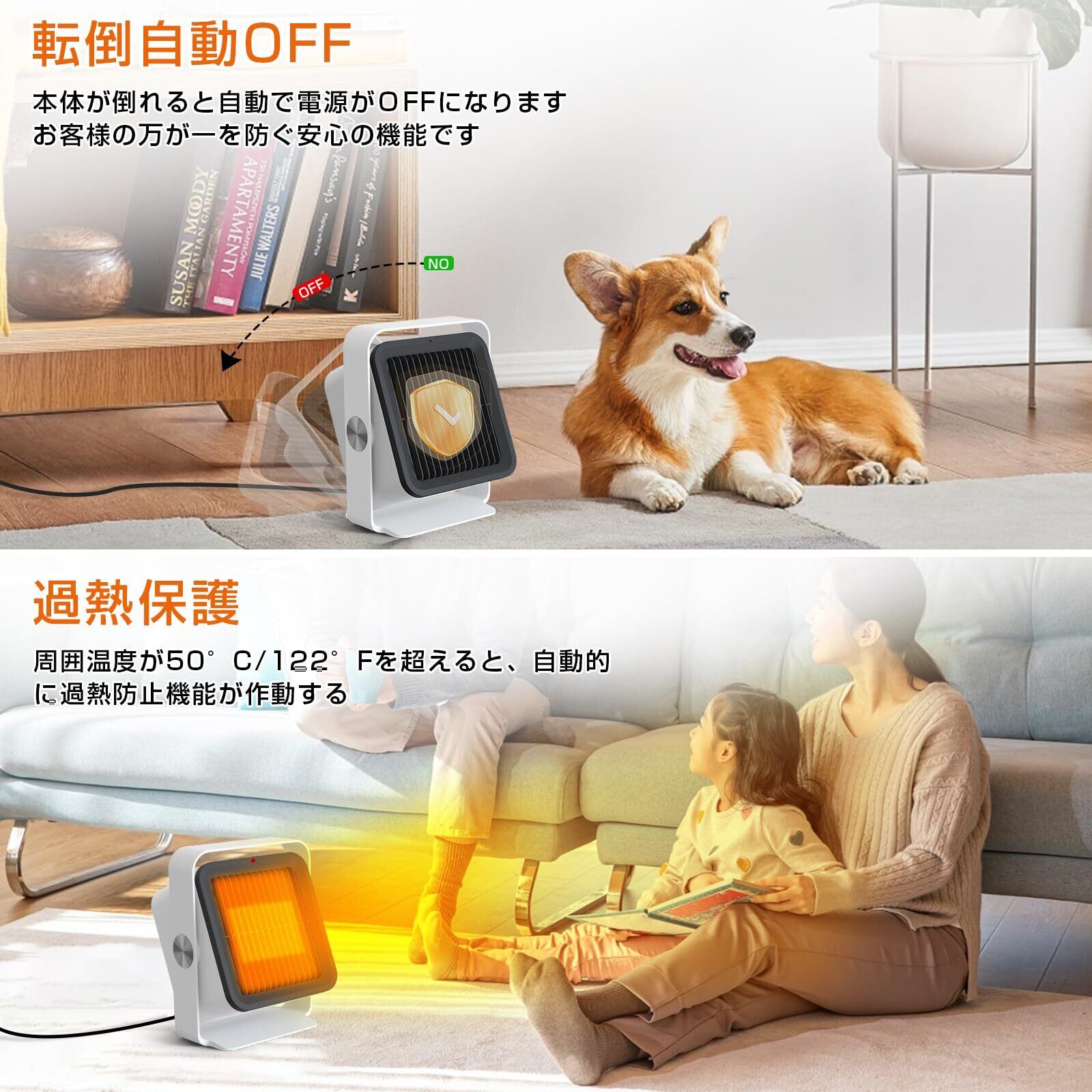 ■安全機能満載で安心!■ 転倒オフ機能を搭載しており、万が一倒れてしまった場合でも自動的に電源が切れます。さらに、過熱保護機能も搭載されており、安全性が大幅に向上。お子様やペットのいる家庭でも安心してご使用いただけます。