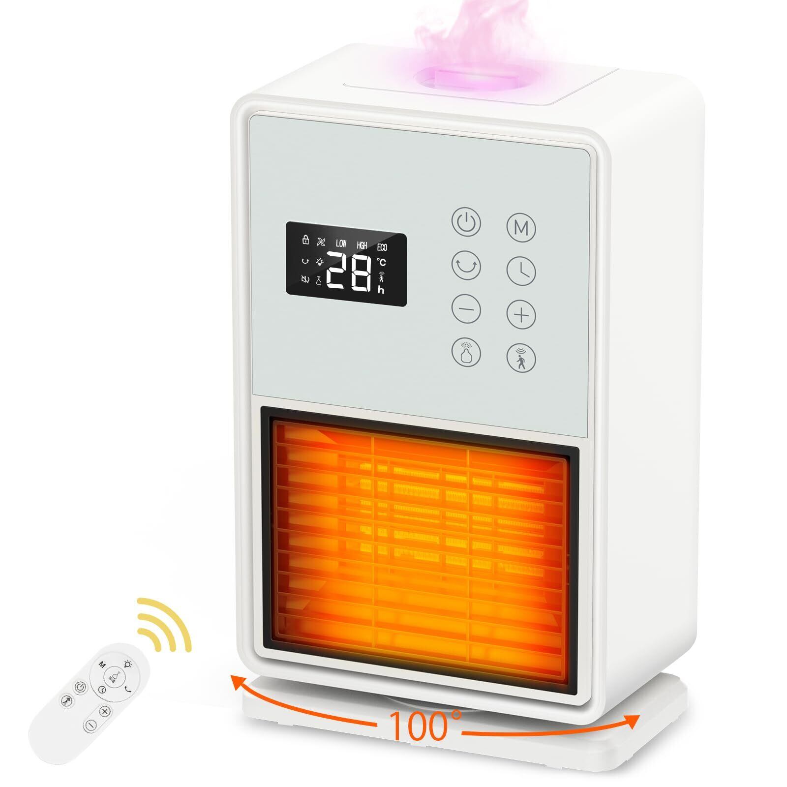 セラミックヒーター【2025冬新型 暖房・加湿・空気清浄】超音波加湿搭載 人感センサー付 ECO知能恒温 節電対策 LED大型ディスプレ カラーLEDライト 自動首振 電気ストーブ セラミックファンヒーターり電気ヒーター 1秒速暖 4段階切替 24時間タイマー機能 1200W/800W 転倒自動オフ 過熱保護 暖房器具 脱衣所 洗面所 台所 PSE認証済