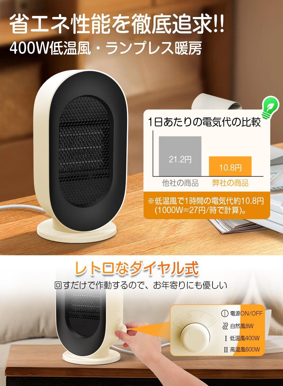 セラミックヒーター 小型 400W/600W 速暖 省エネ【2025冬の定番!】静音 過熱保護 転倒OFF コンパクト 持ち運び 卓上 デスク下 足元暖房 脱衣所/トイレ/寝室 オフィス/窓下結露対策/洗面所