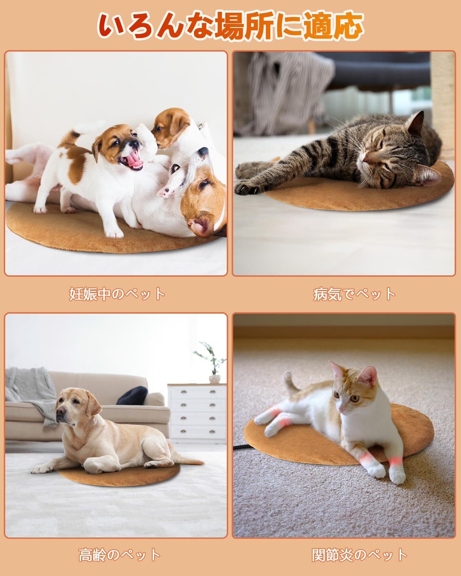 【過熱保護機能】製品内部の電熱線は均等に分布しており、ペットに均一な熱を提供し、より快適です。内蔵の55°温度制御装置により、温度が高くなりすぎることを防ぎ、ペットが火傷するのを防ぎます。