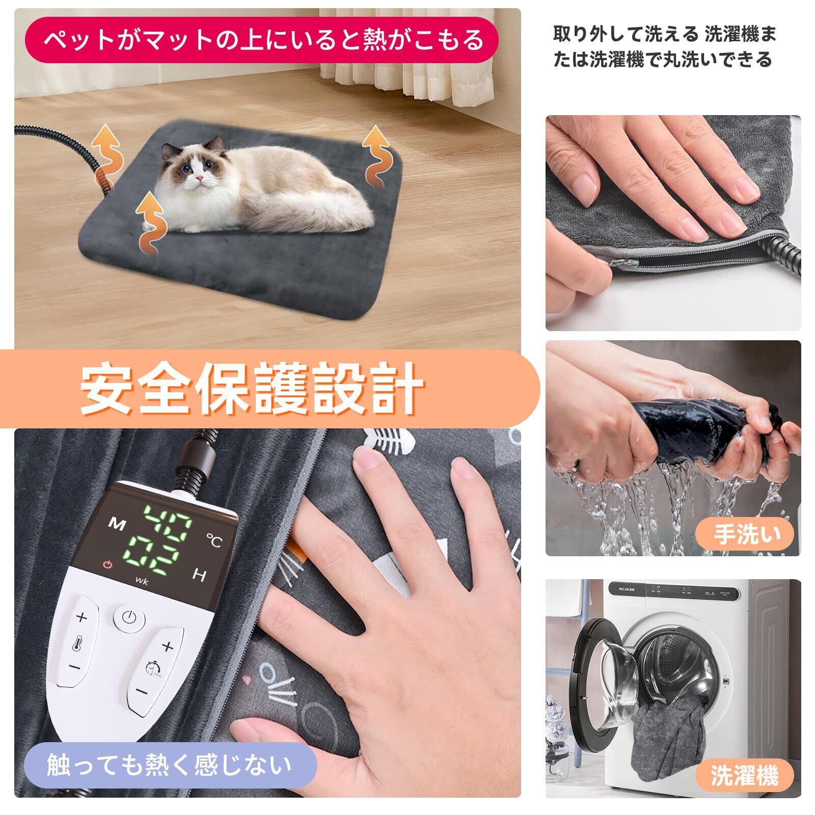 ペット用ホットカーペット【ペット専門家鈴木監修】45x45cm ペットヒーター 犬 猫 30℃~60℃温度調節可能 13段階タイマー機能 恒温機能 PSE認証済みペット ヒーター 噛み癖対策 金属スパイラル管付き カバー2枚洗濯可能 過熱保護 防水 暖房器具 寒さ対策 ヒーター 猫用ホットカーペット ペット用ヒーター 小動物 日本語取扱説明書付き