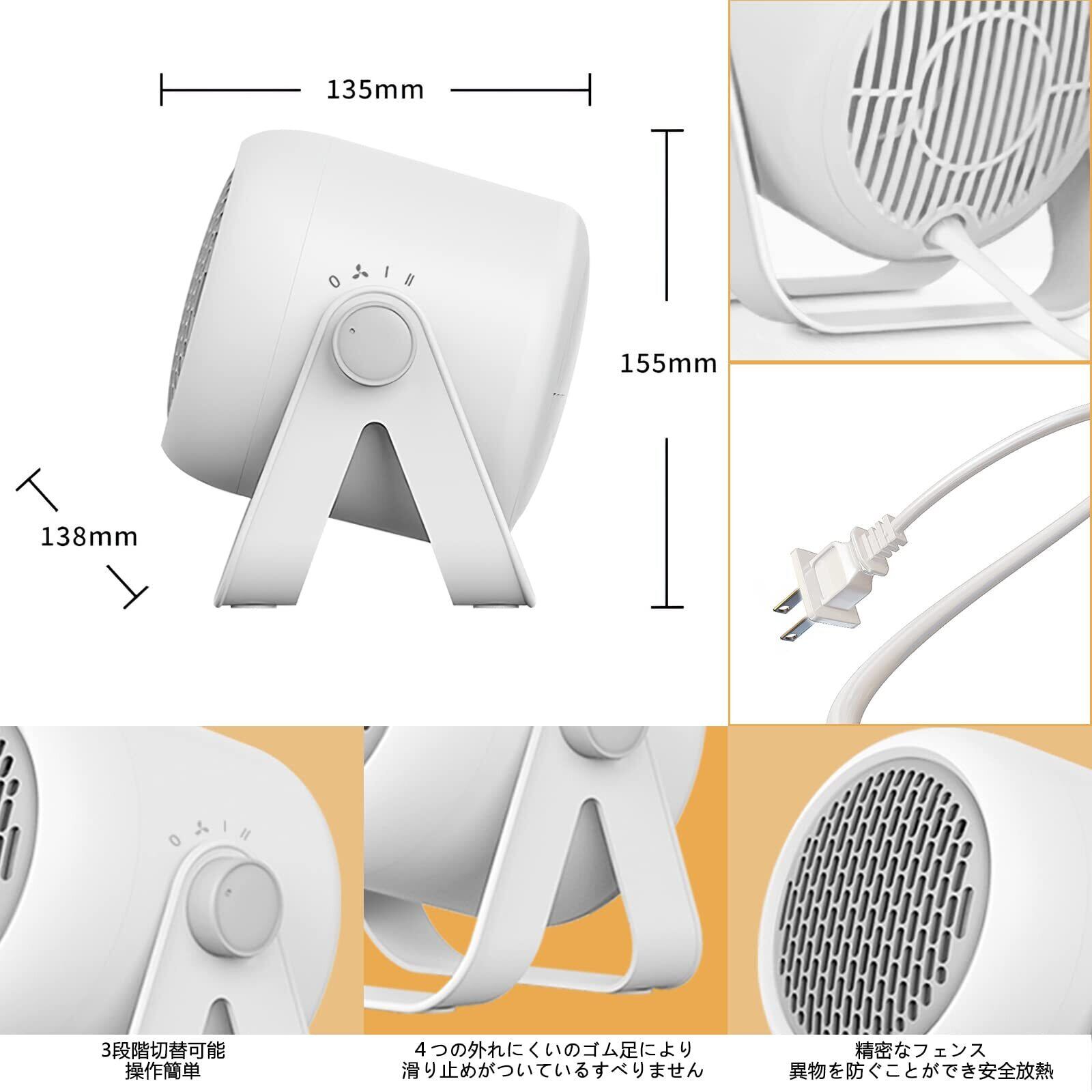【お手入れ簡単】ファンヒーターの重量は約0.8KGです、持ち運びやすく、安全機能付きなので、秋冬の車中泊やキャンプでも活用できるミニ暖房器具。ヒーター背面の防塵フィルタ一は簡単に取り外して掃除機などでお手入れできます。(必ず電源プラグを抜き、本体が十分に冷めた状態で行ってください。) ※温風運転中や運転直後は送風口など熱い部分には触れないでください。 やけどの原因になります。【安心丁寧なアフターサービス】製品について、何がご質問がございましたら、または製品が不具合が発生する場合、お気軽にお問い合わせください。早速対応させていただきます。メールの連絡方式:「注文歴史」→「該当注文」→「出品者に連絡する」。