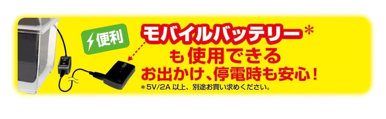 モバイルバッテリーもしようでき(※Sサイズのみ)、お出かけ、停電時も安心、便利。※5V/2A以上、別途お買い求めください。