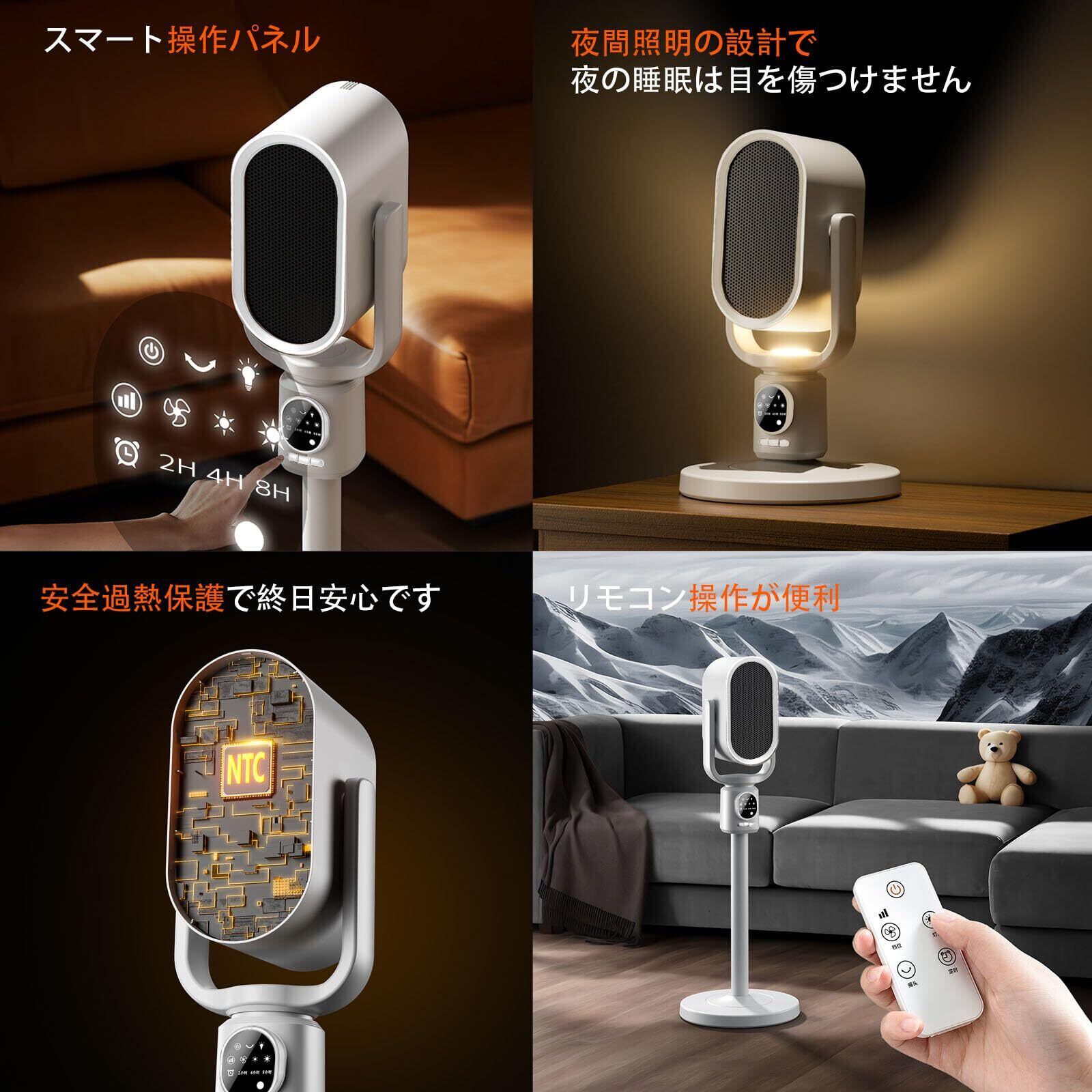 sumiren【2025冬新登場】セラミックヒーター 速暖 ECO省エネ 電気ヒーター 冷暖両用 ファンヒーター リモコン操作 高さ調節可能 70°自動首振り 3段階切替 ナイトライト機能付き 過熱保護 転倒安全装置 節電対策 持ち運び 寝室/脱衣所/トイレ/洗面所/オフィス/子供部屋に適用日本語説明書 PSE認証済み 節電対策