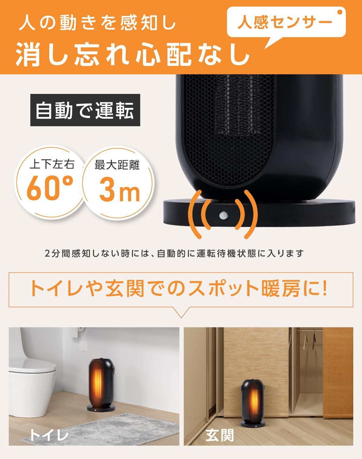 【2秒速暖&便利な人感センサー】セラミックファンヒーターは、ダイヤルを回すだけでわずか2秒で暖かな風が吹き出し、ぬくぬく空間を作ってくれます。冷たい冬の朝、外出から帰宅時、就寝前や寝室、洗面所、脱衣所、キッチンなど、あらゆる場面で活躍します。便利な人感センサー機能により、人の動きを察知し、消し忘れの心配がありません。