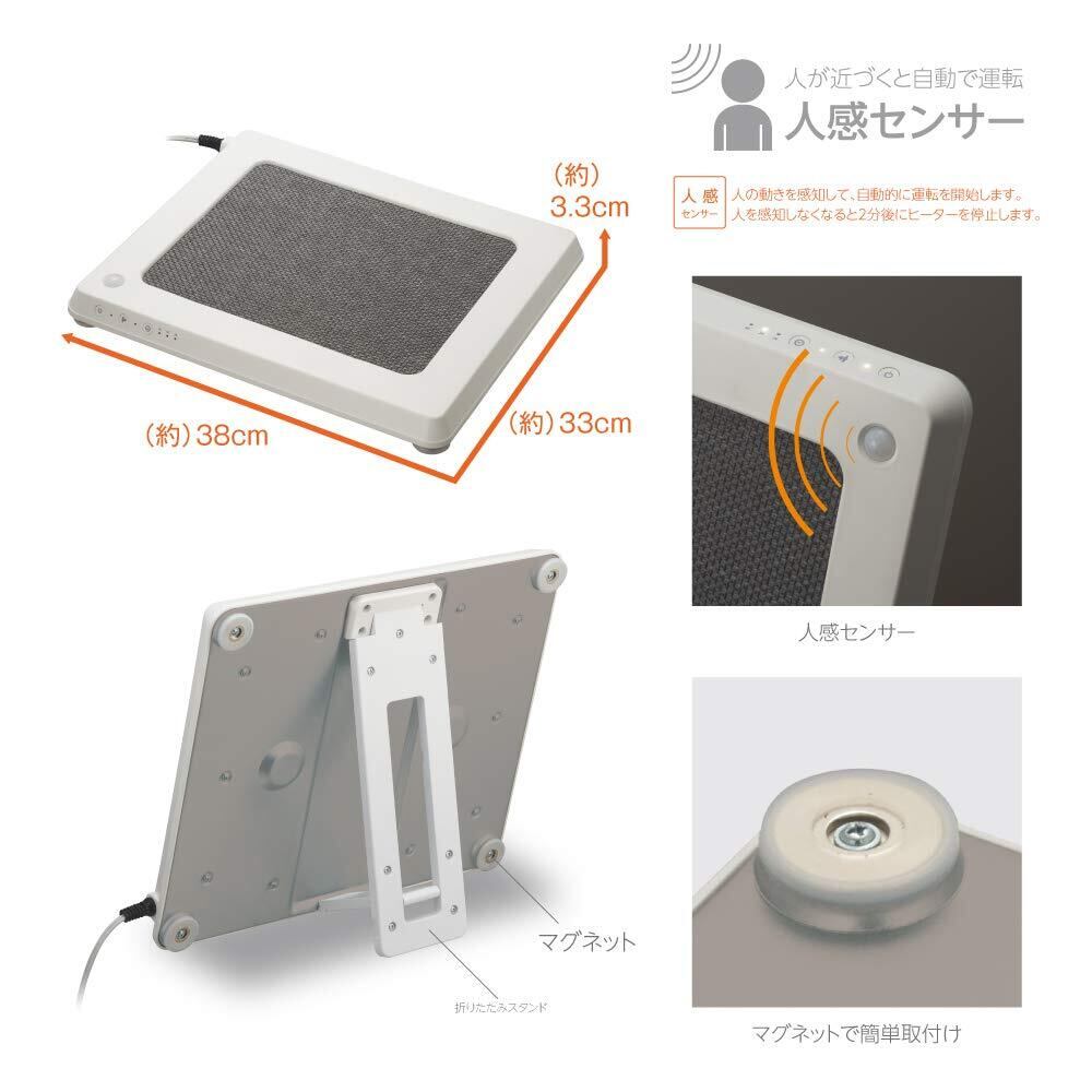 【心地よい暖かさを足元から】ドウシシャの足元パネルヒーターは、人感センサーを搭載し、自動で運転する便利なヒーターです。足元をしっかりと暖めることで、寒い季節の快適さがアップします。冬のリビングやオフィスにぴったりのアイテムです。