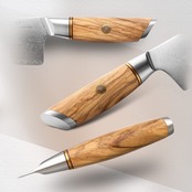 【オリーブウッドハンドルが特徴!】持ちやすいオリーブウッドのハンドルは、手に馴染みやすく、長時間の使用でも快適です。エレガントなデザインで、キッチンに美しいアクセントを加えます。料理をするたびに、特別なひとときを演出します。