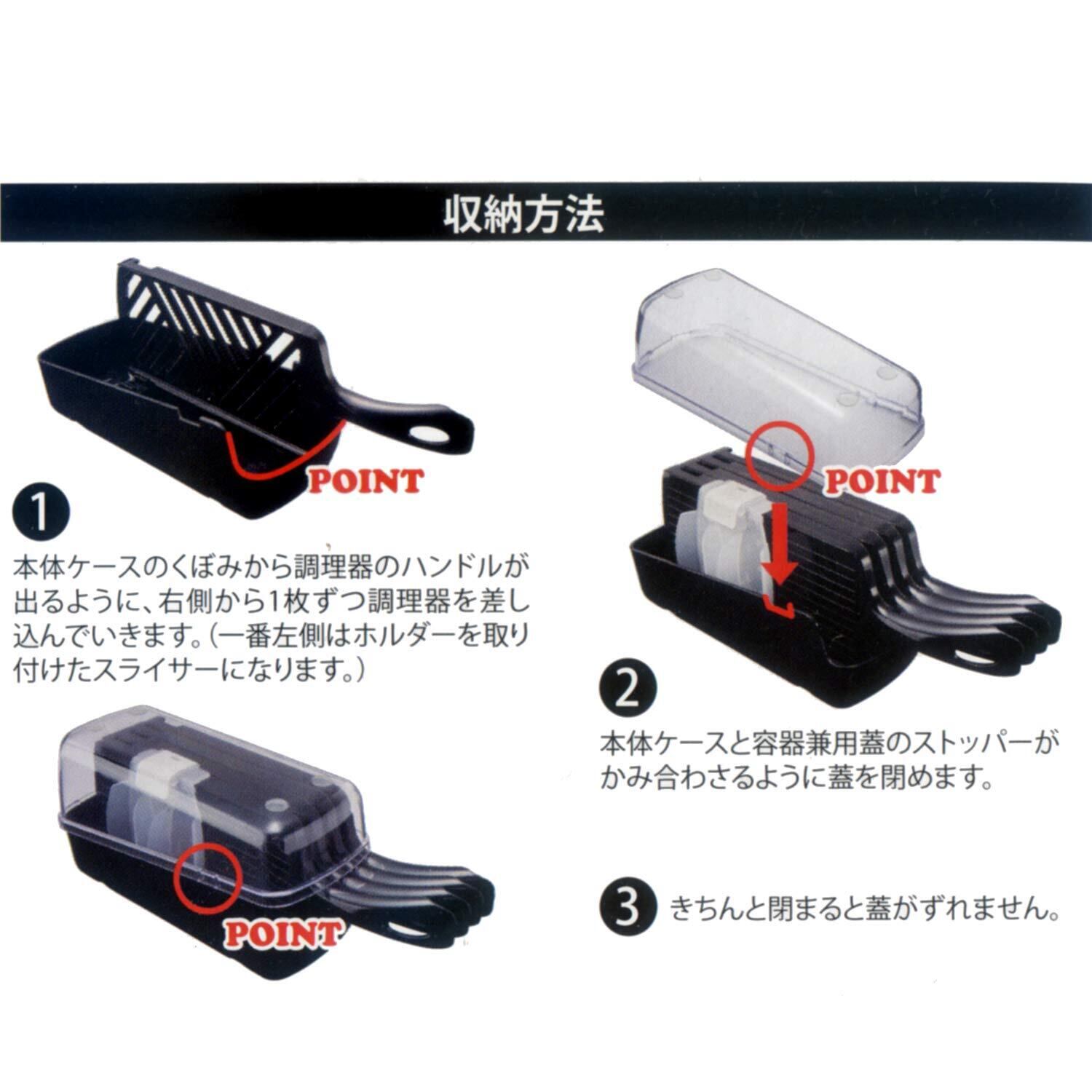 セット内容:おろし器/スライサー/千切り/細千切り/保護ホルダー/収納ケース各1個