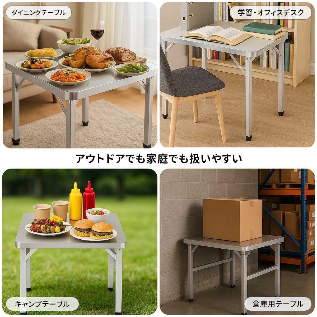 【高品質の素材】この折りたたみテーブルは高品質のステンレス素材を使用しており、錆や腐食に強く、優れた耐久性を持っています。特別に研磨され、超防水、拭き取りと清掃が簡単。優れた耐荷重性、長期間の使用でも変形しにくく、安定した品質をお届けします。ご注意:サイズ測定では1-3cmの誤差があります。予めご了承ください。