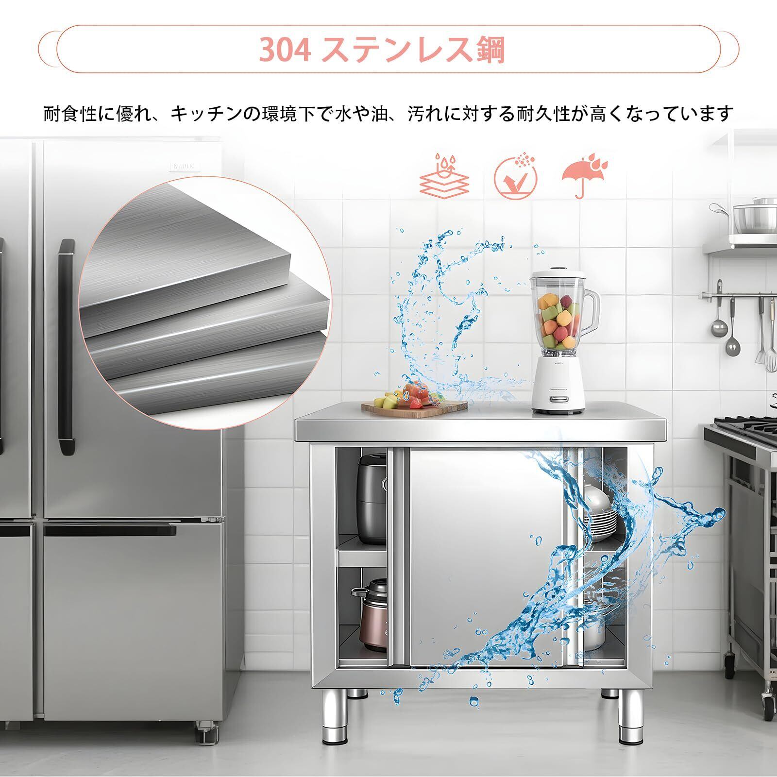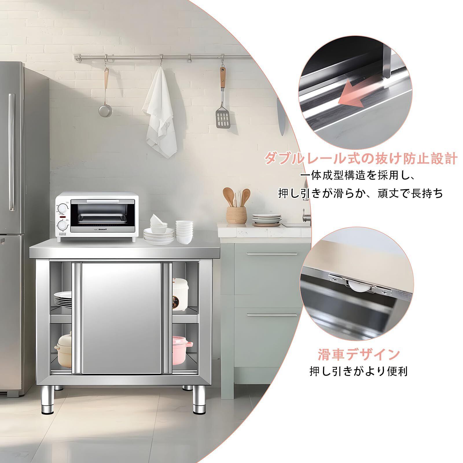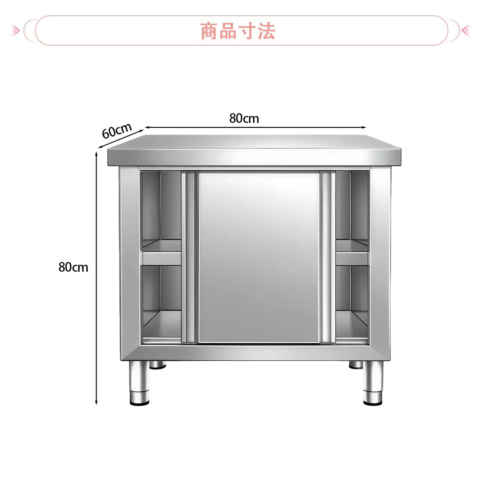 YASICA 業務用作業台 調理台 ワークステーション準備テーブル 頑丈な304ステンレス製テーブル キッチン作業台 キッチンキャビネット 業務用ケータリングテーブル 家庭用オペレーター 収納キャビネット付き 引き戸式シェルフ (80*60*80cm)