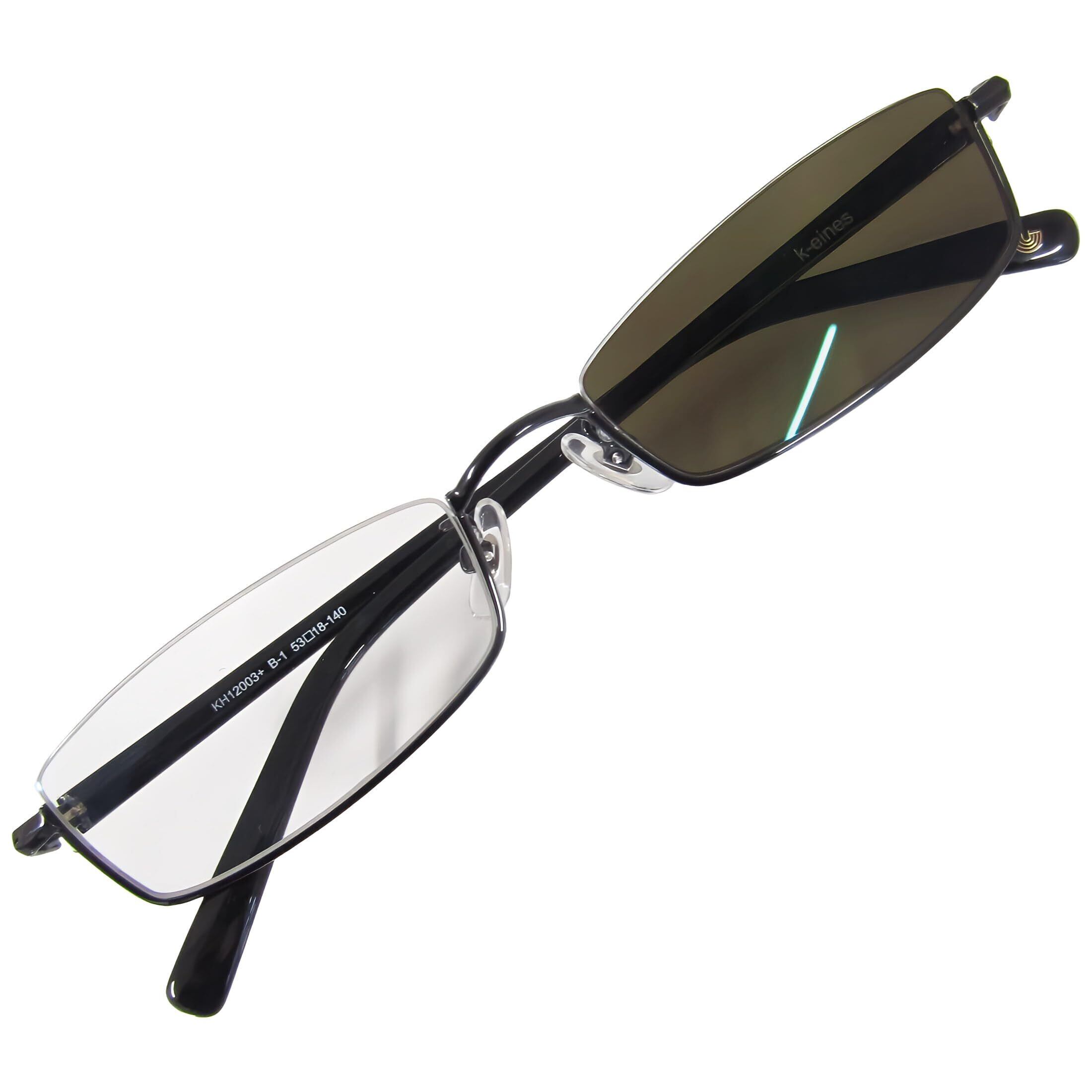 [k-eines] 車内でも色が変わる 可視光調光 サングラス おしゃれ スクエア アンダーリム ユニセックス 軽量 UV ブルーライトカット 12003s